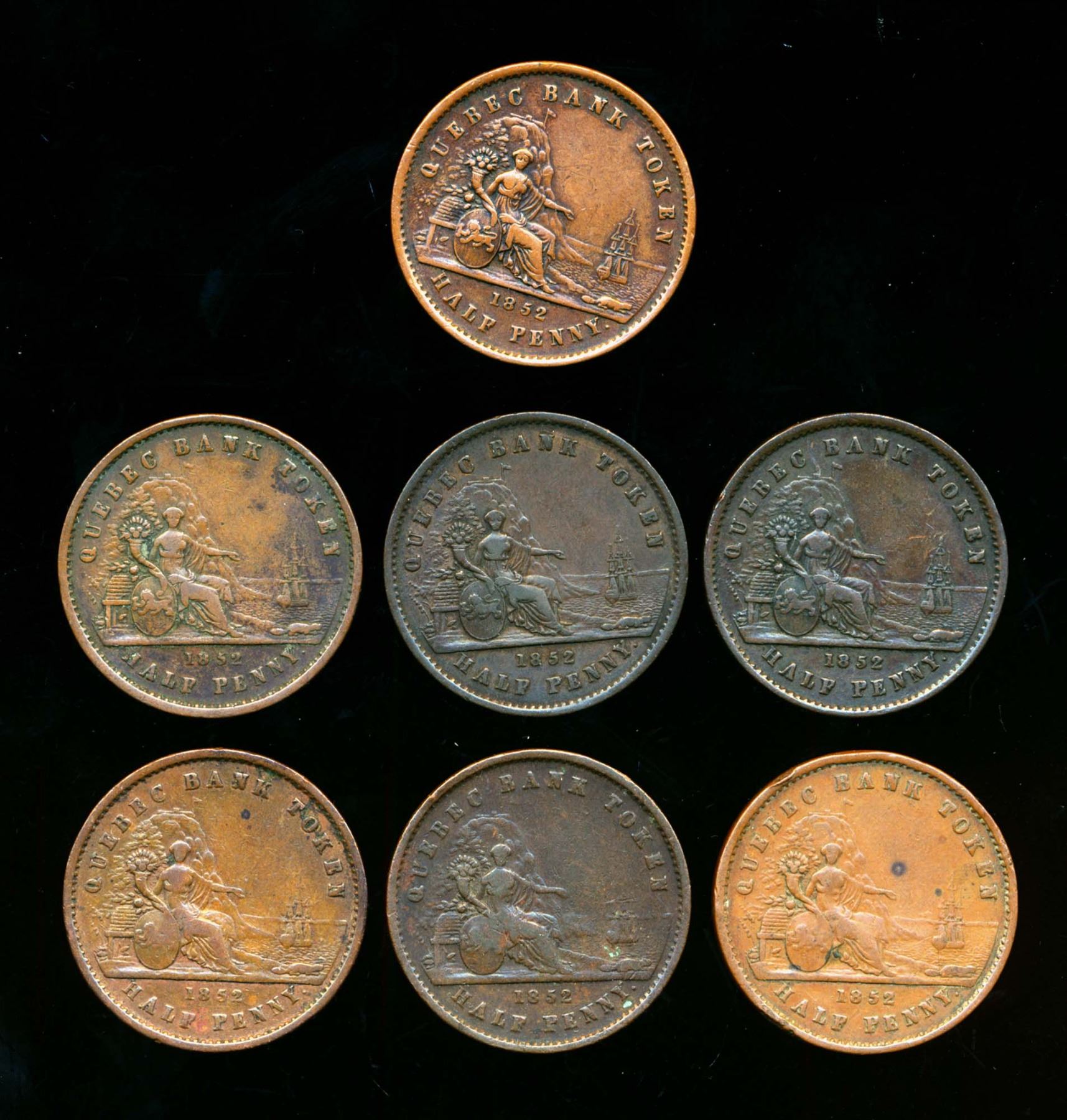 TOKEN Halfpenny 1852 PC-3 A Lot of 7 Pieces Fine-Extra Fine