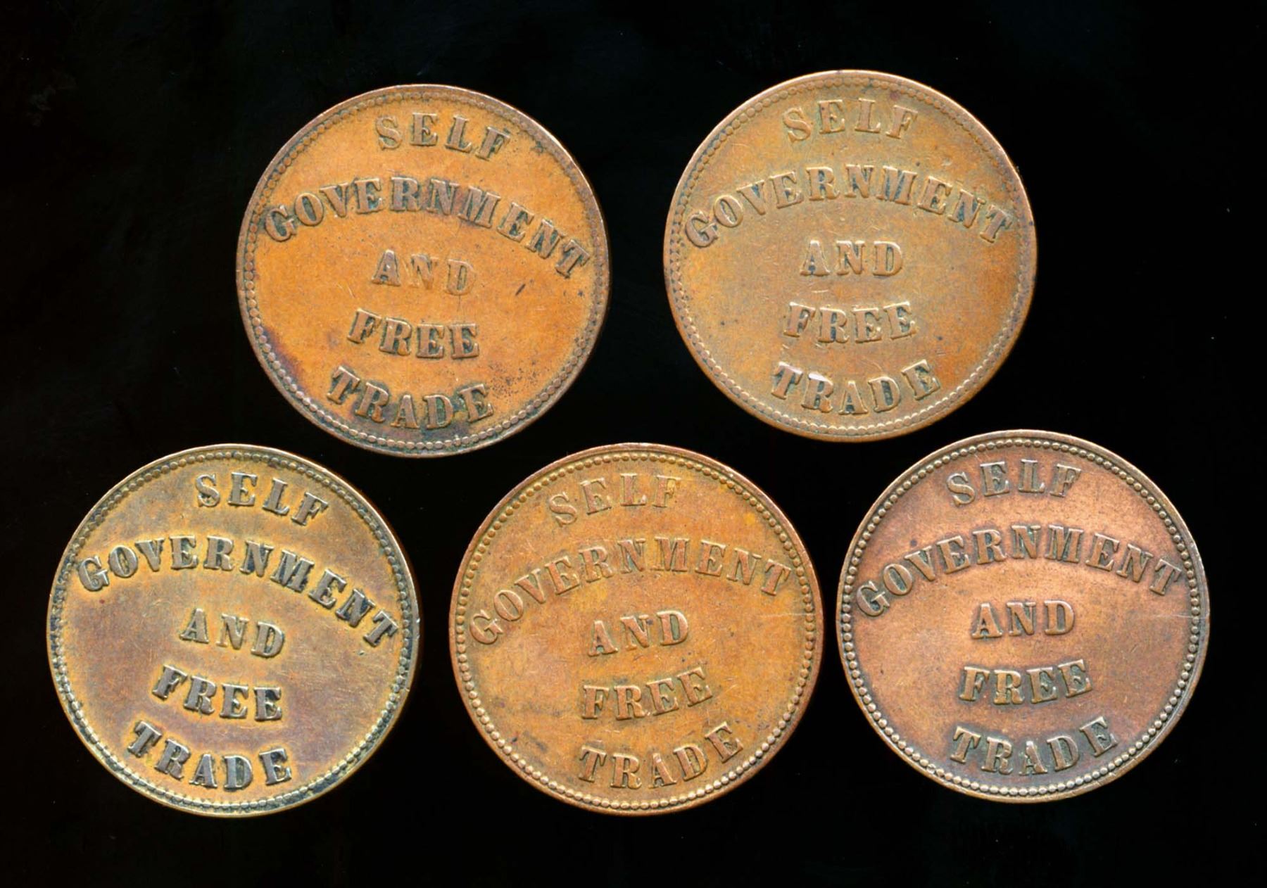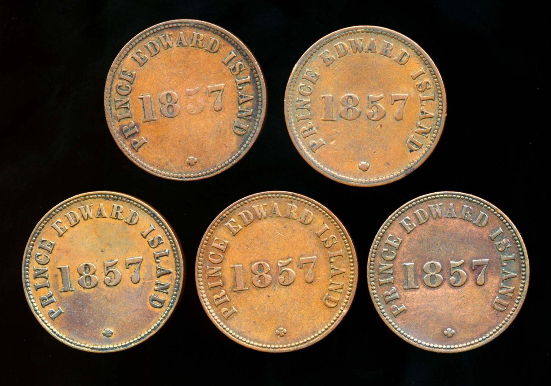 TOKEN Halfpenny 1857 PE-7C1 A Study of 5 Coins Fine+-Extra Fine