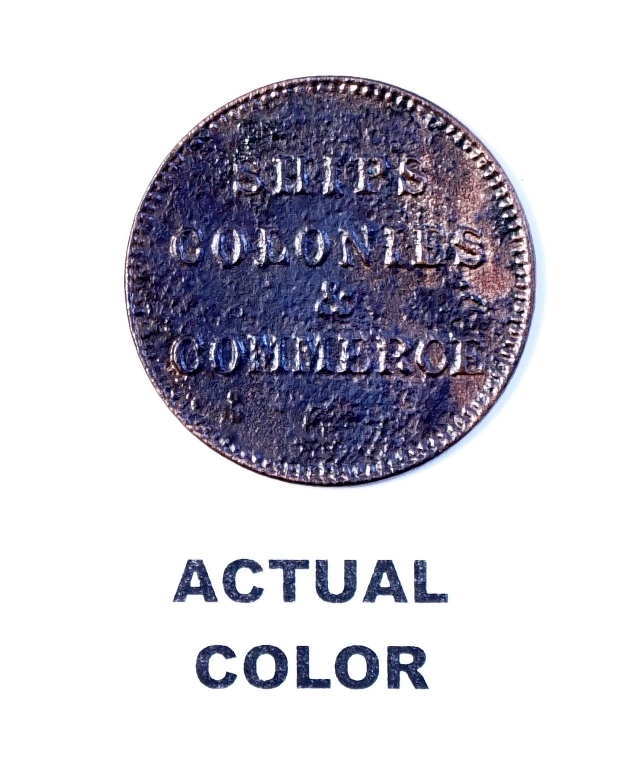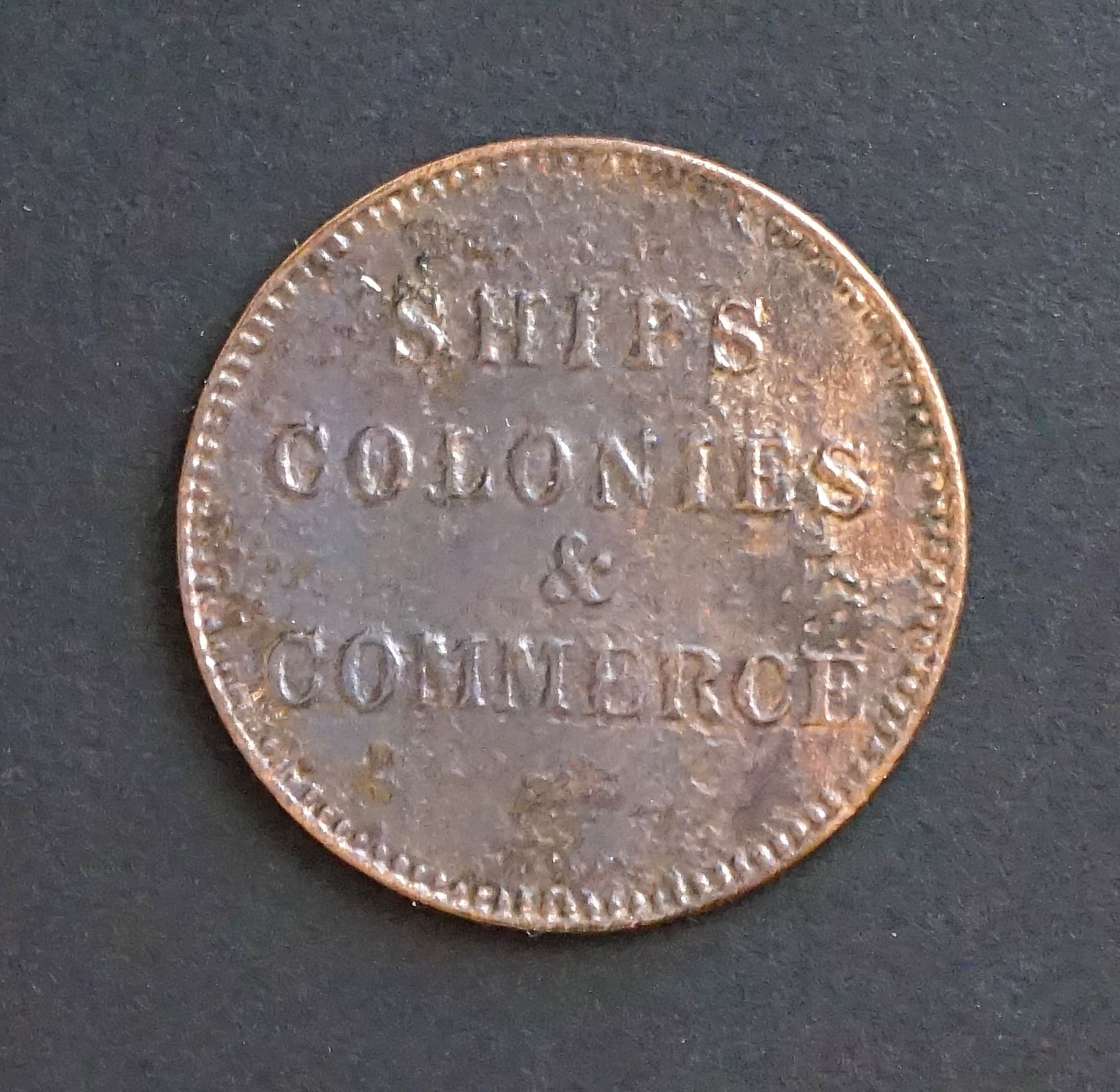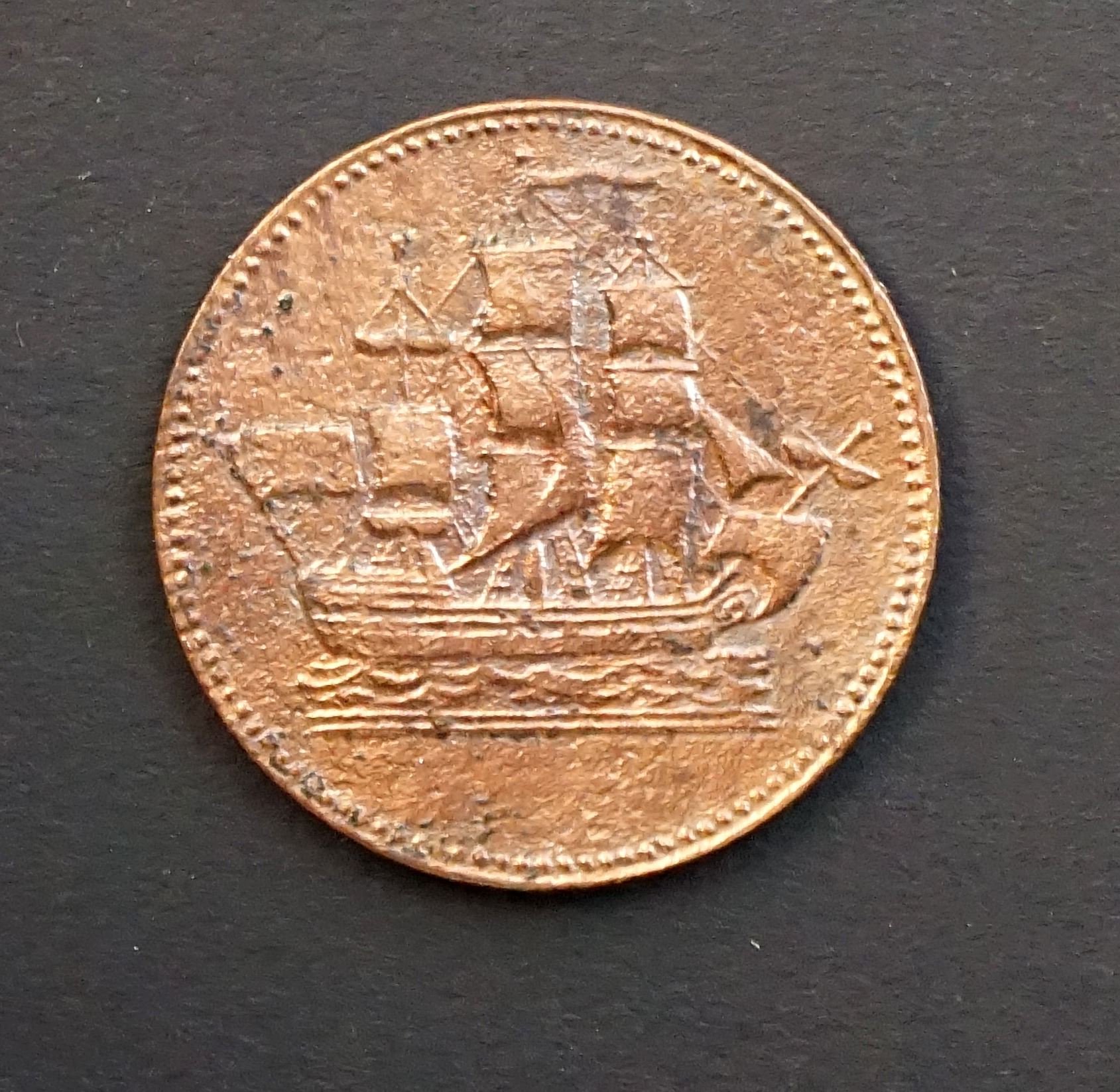 TOKEN Halfpenny PE-10-28 Ships & Colonies 1835 Br-997 4.6 gm. Extra Fine