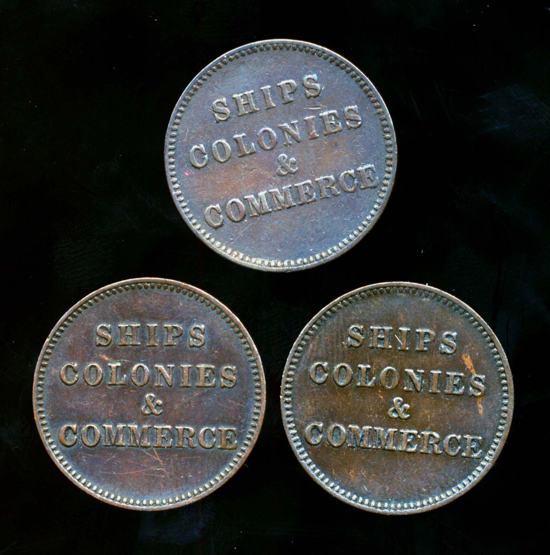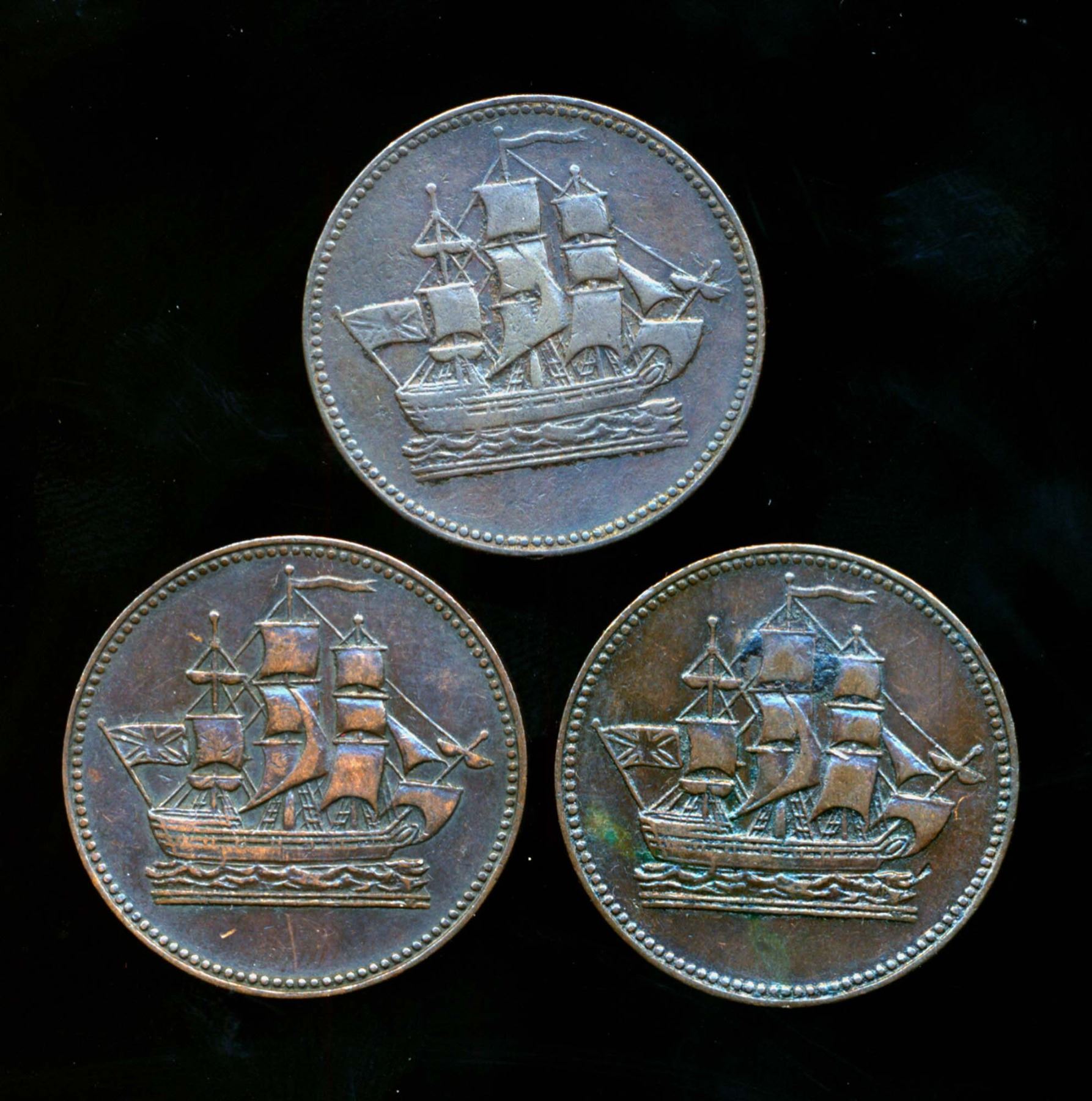 TOKEN Halfpenny PE-10-29 A 3 Piece Die Study Grouping Fine-Extra Fine