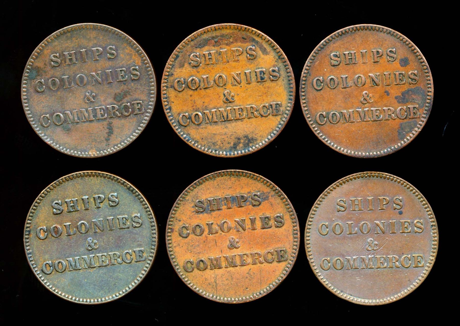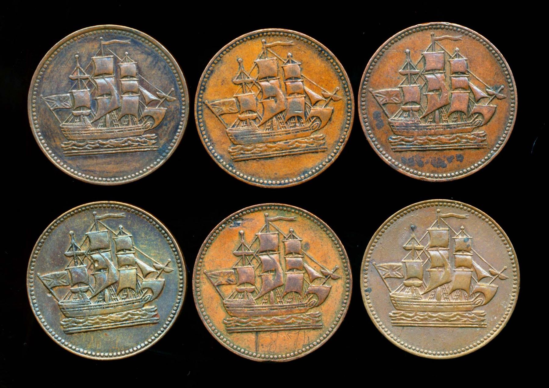 TOKEN Halfpenny PE-10-30 A 6 Piece Die Study Grouping Fine+-Very Fine