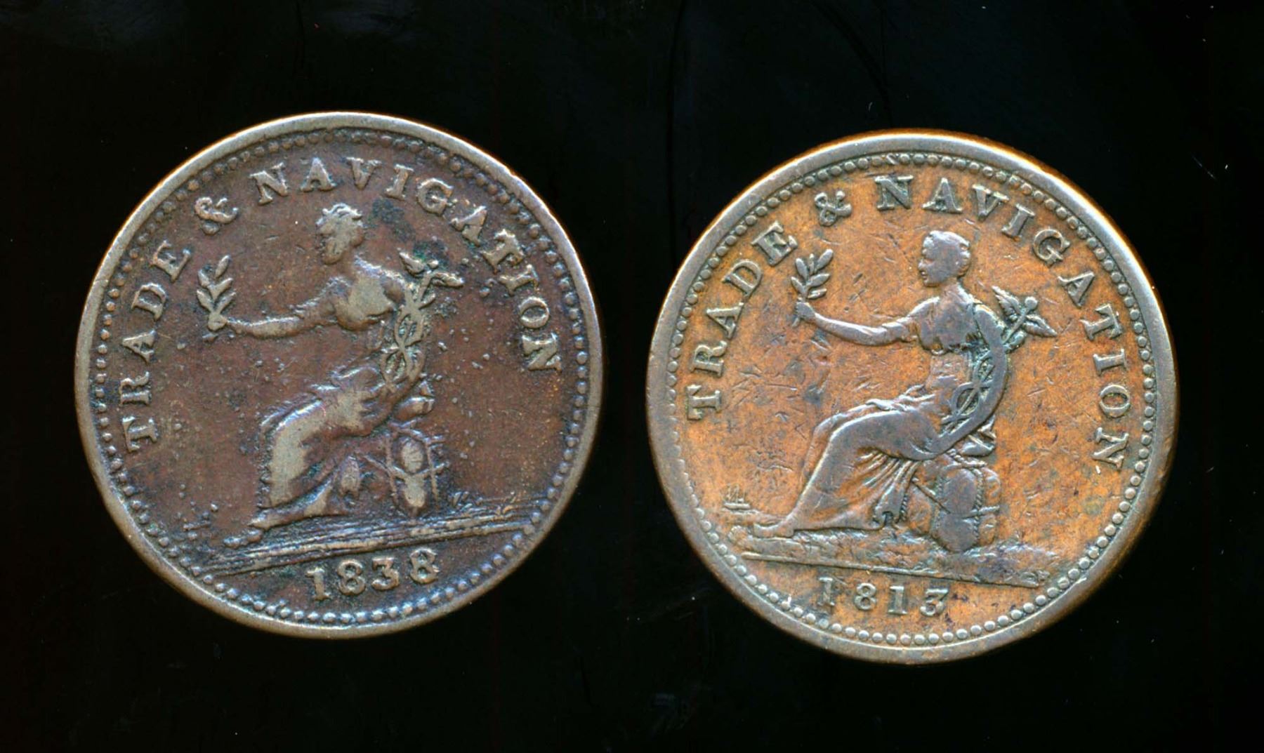 TOKEN Penny 1813-1838. A Pair of Trade & Nav. Pieces Fine-Very Fine