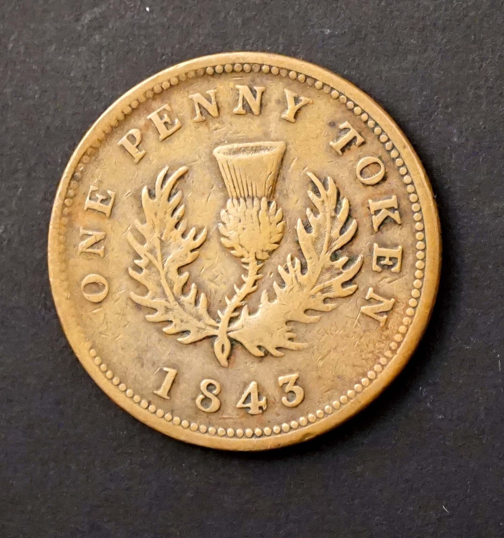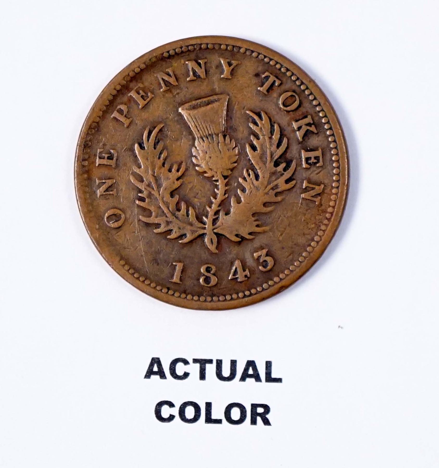 TOKEN Penny 1843 NS-2D2 Br-873 17.2 gm. Very Fine