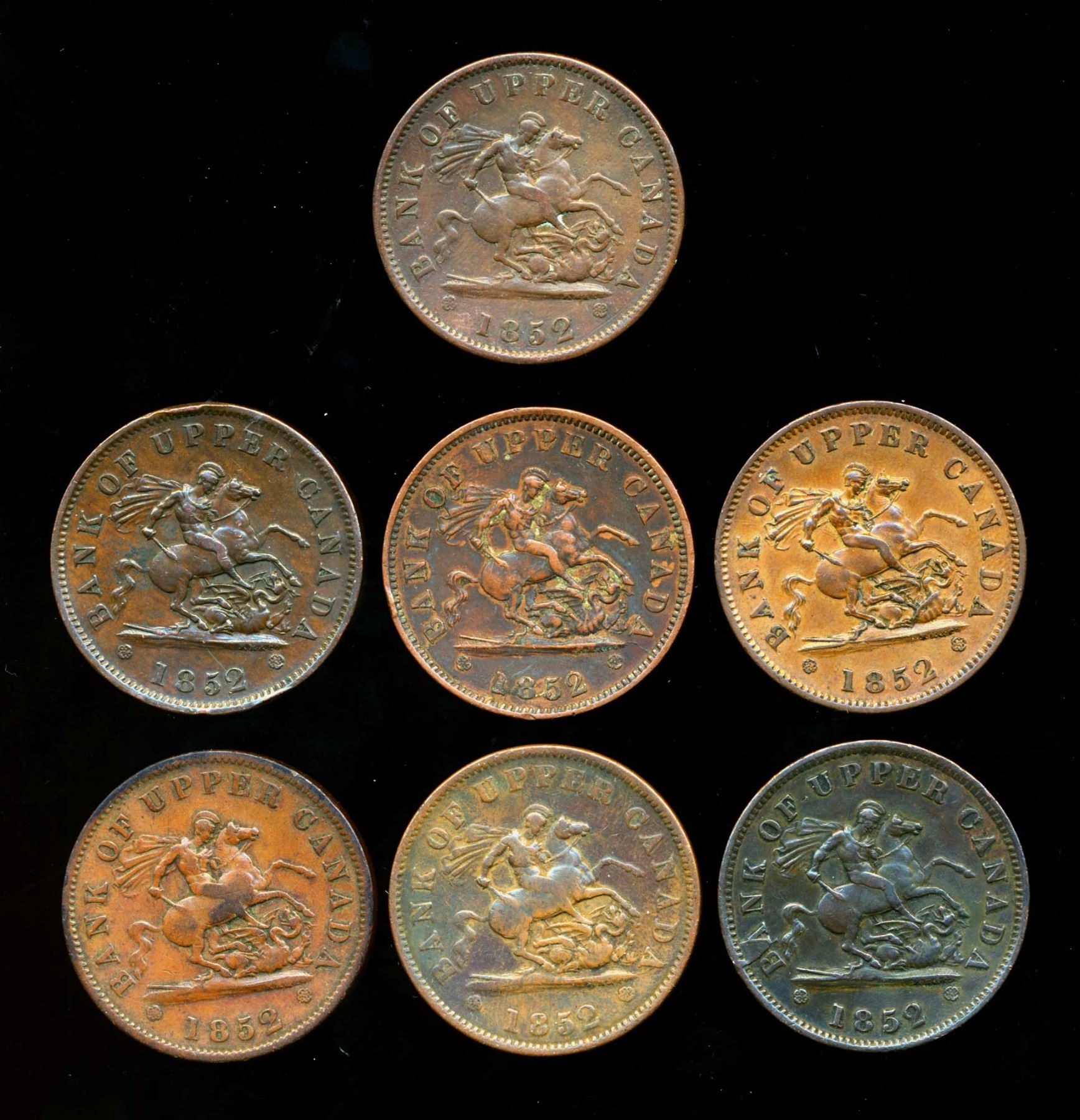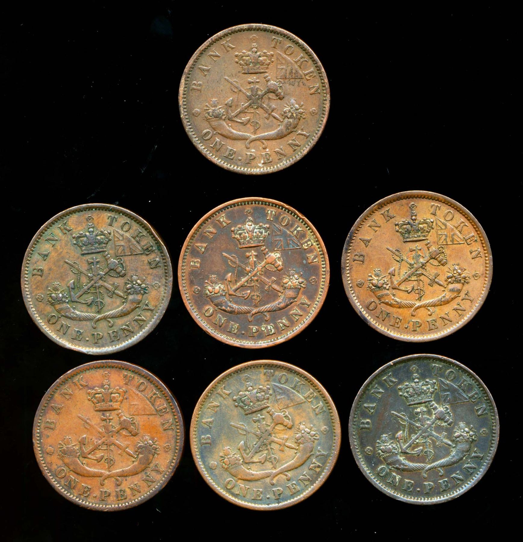 TOKEN Penny 1852 PC-6B A Study Group of 7 Pieces Fine-Very Fine+