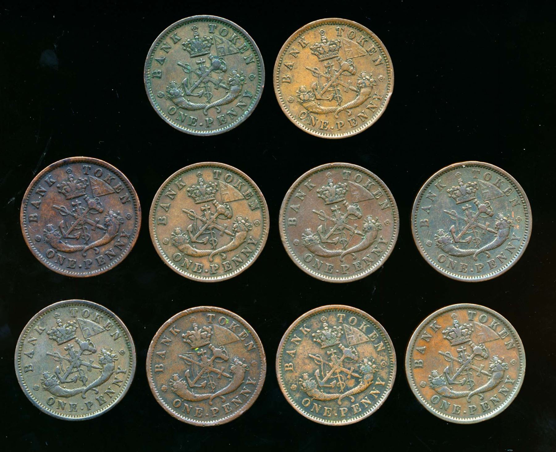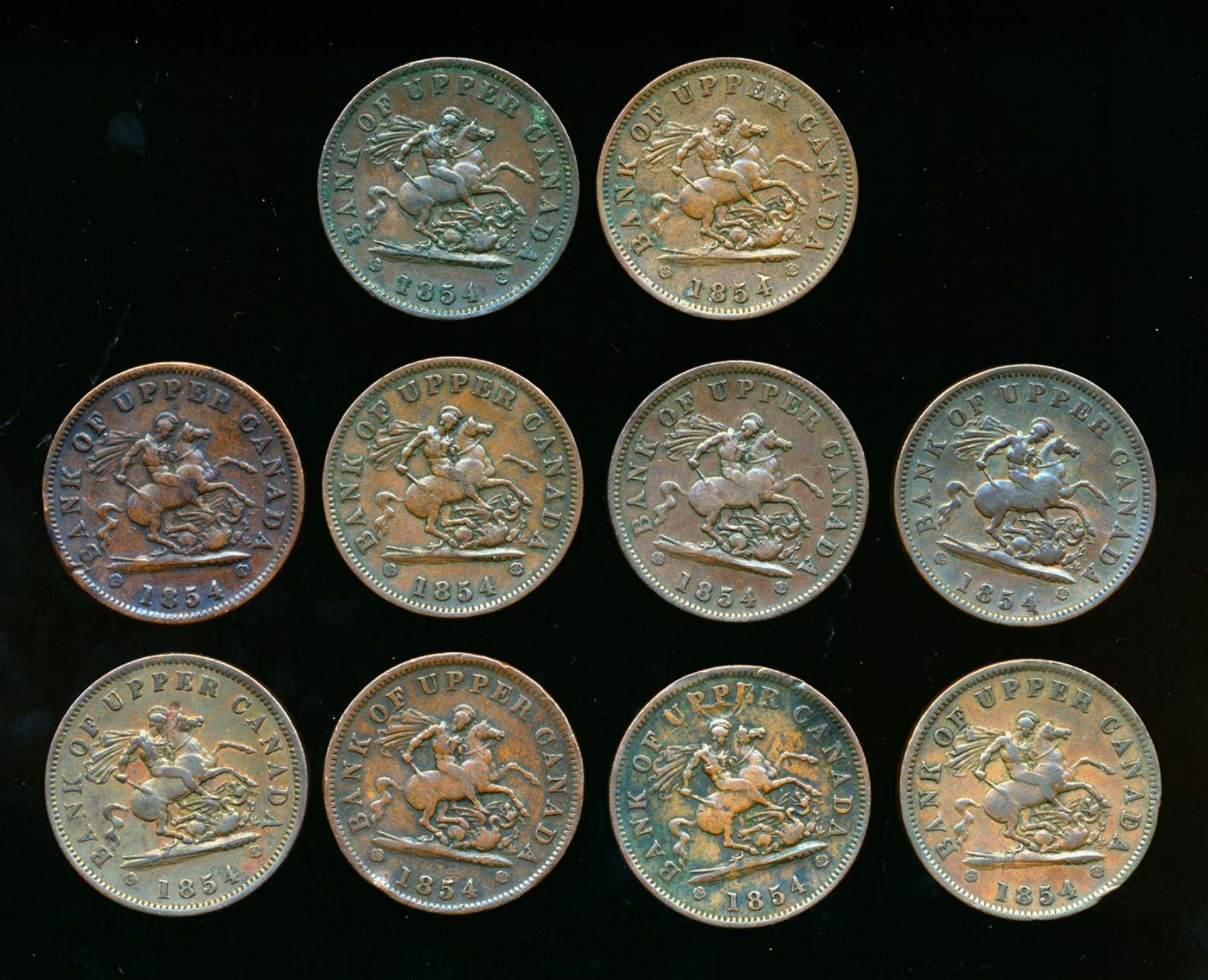TOKEN Penny 1854 PC-6C1 A Study Group of 10 Pieces Fine- Very Fine+