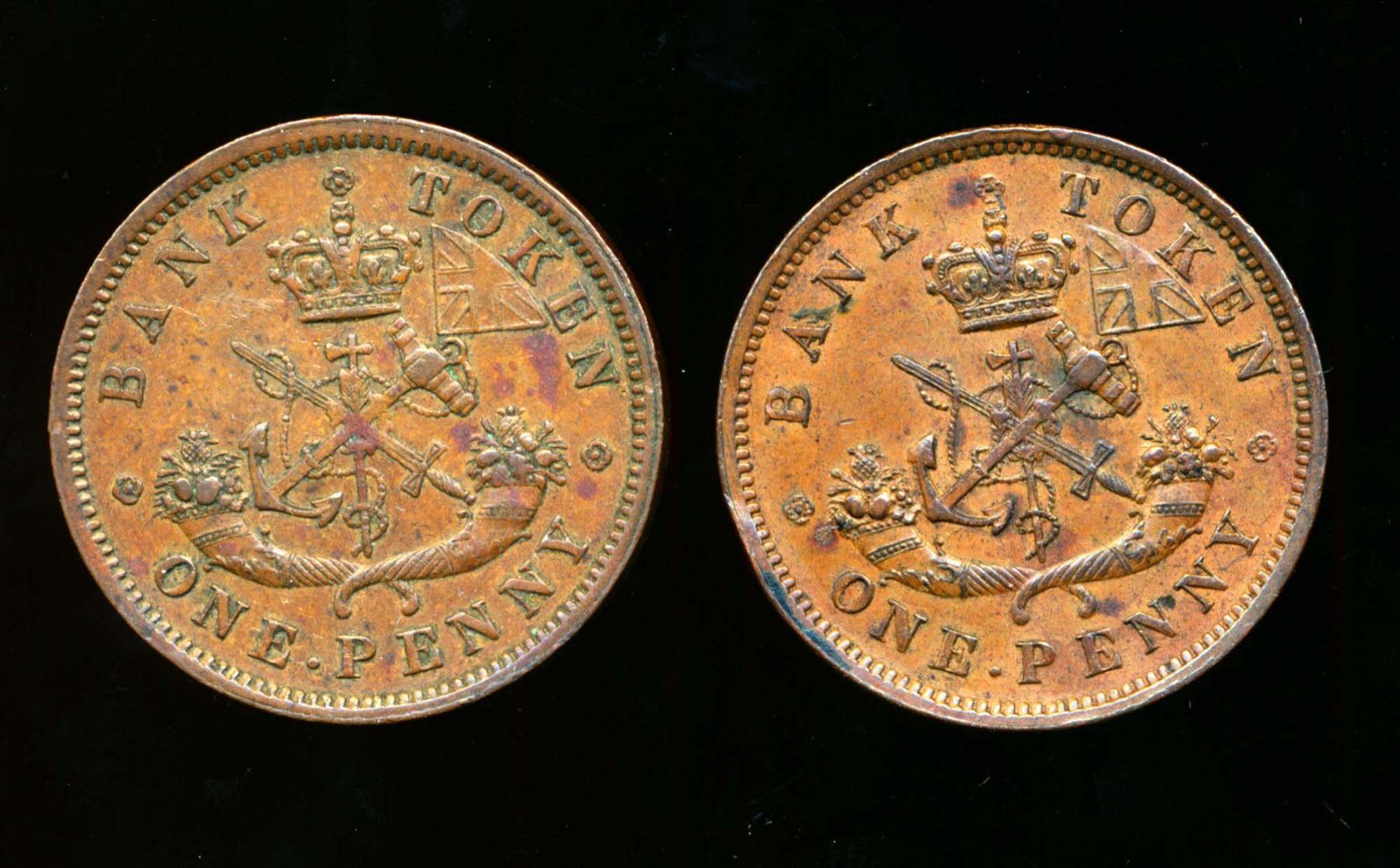 TOKEN Penny 1857 PC-6D A Lot of 2 Better Grade Pieces Extra Fine-Almost Uncirculated