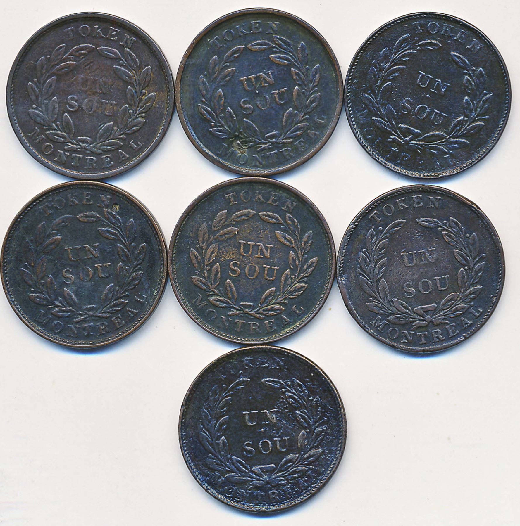 TOKENS A Lot of 7 Lower Canada Bouquet Sou Pieces Fine-Very Fine