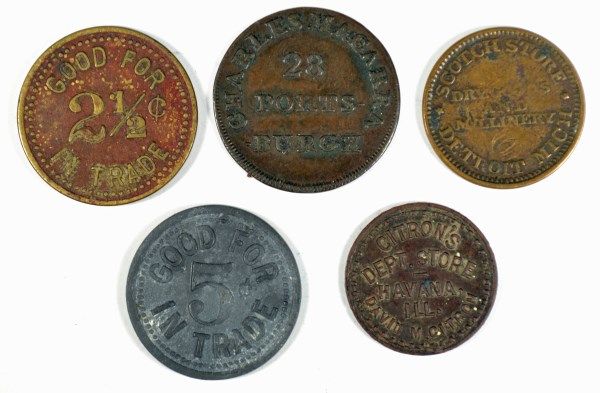 TOKENS: CHARLES MACARRA, CITRON DEPT STORE (2), CAMPBELL LINN DETROIT, 2 1/2