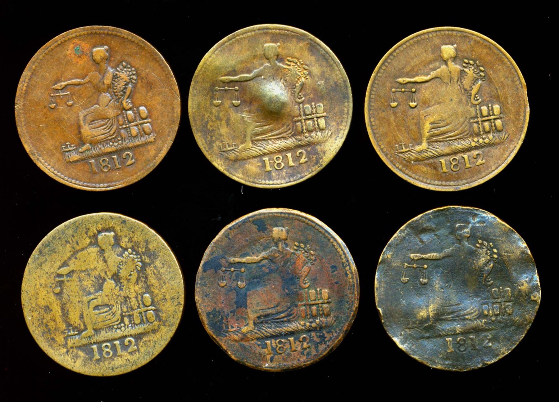 TOKENS Halfpenny 1812 LC-48, A Lot of 6 Tiffin Token Very Good-Very Fine+