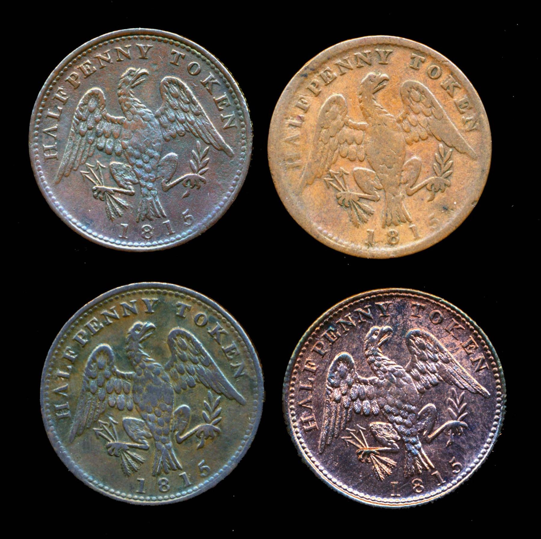 TOKENS Halfpenny 1815 LC-54 A Lot of 4 Spread Eagle Pieces Fine-Extra Fine
