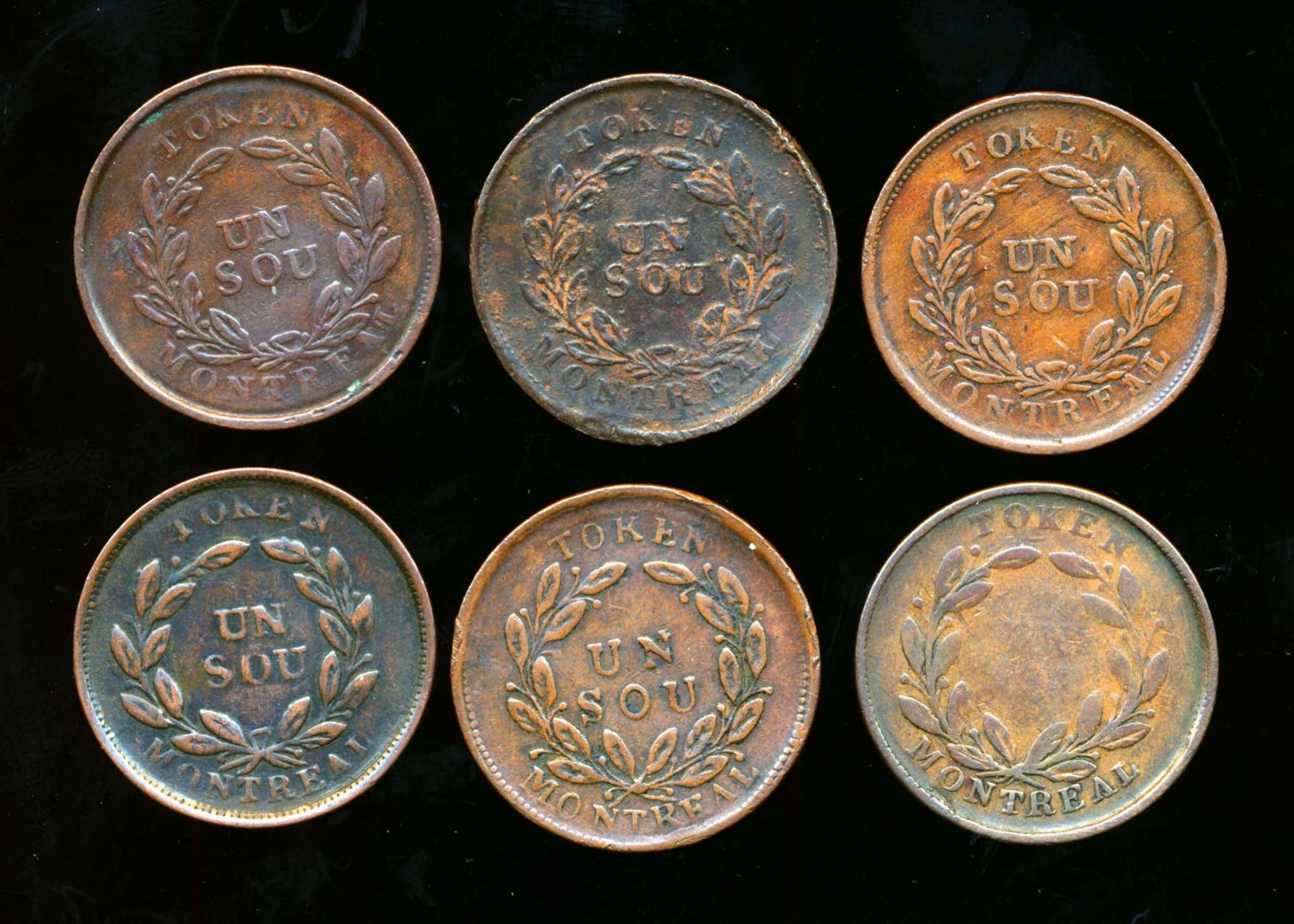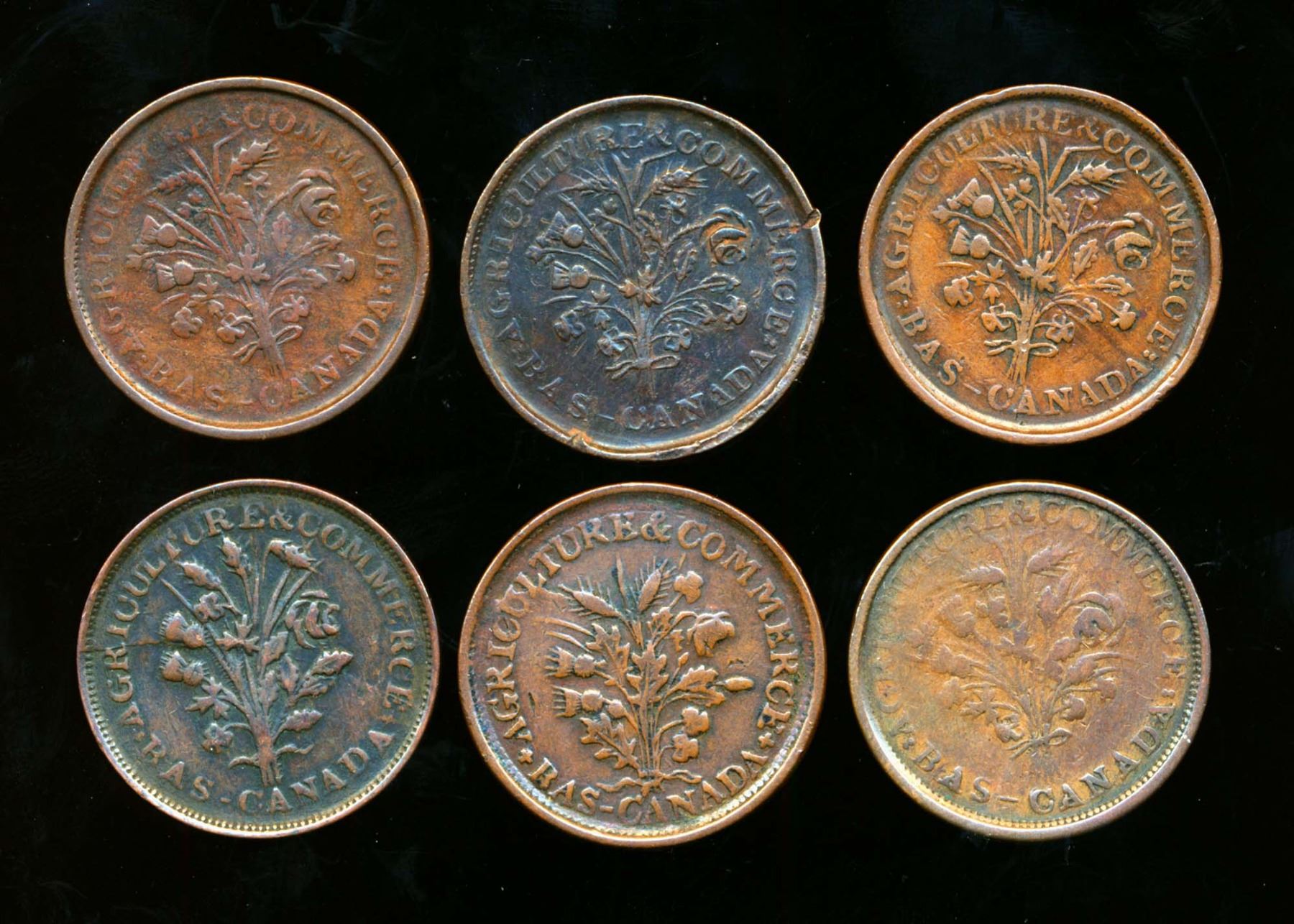 TOKENS Halfpenny A Lot of 6 Lower Canada Bouquet Sous Very Good- Very Fine