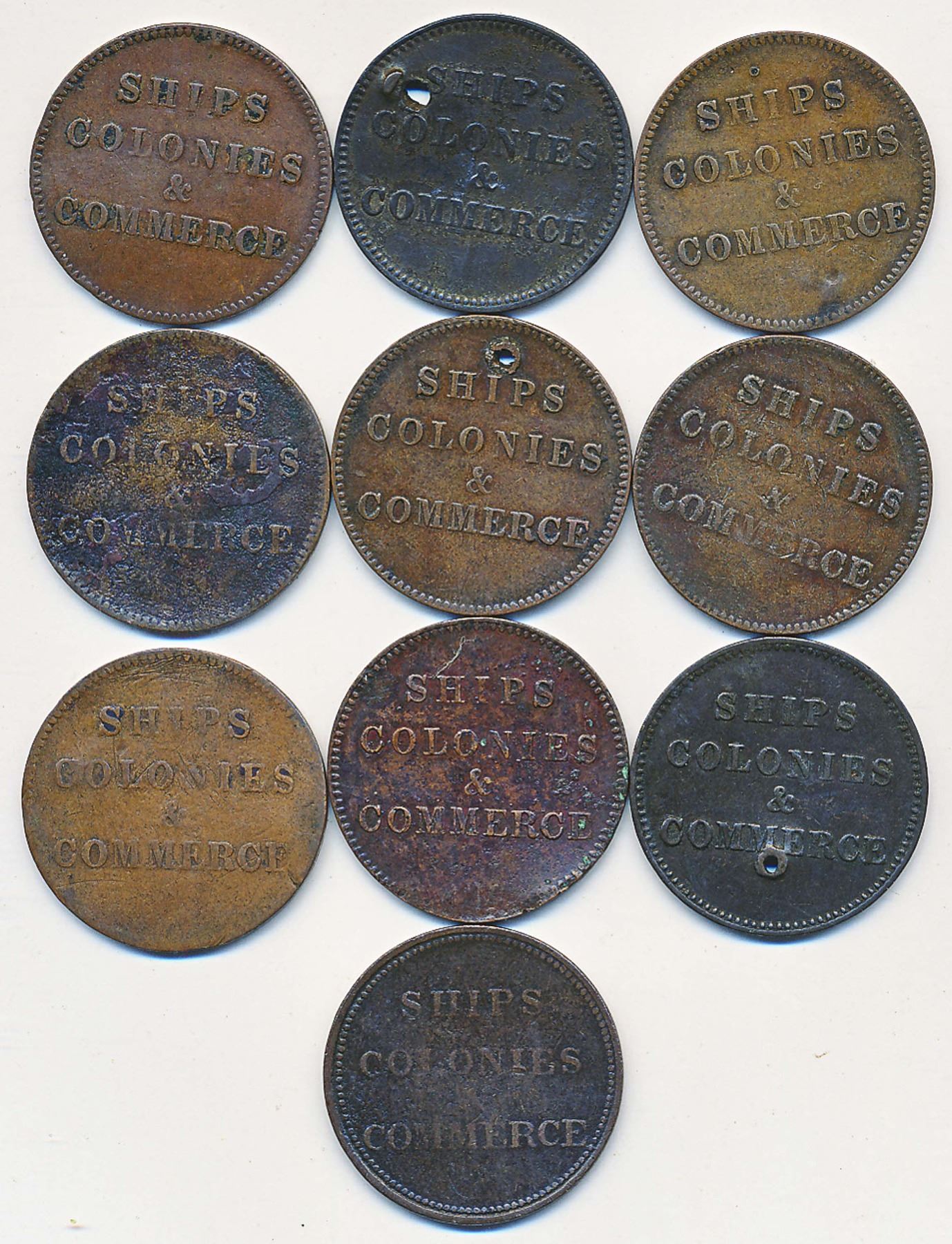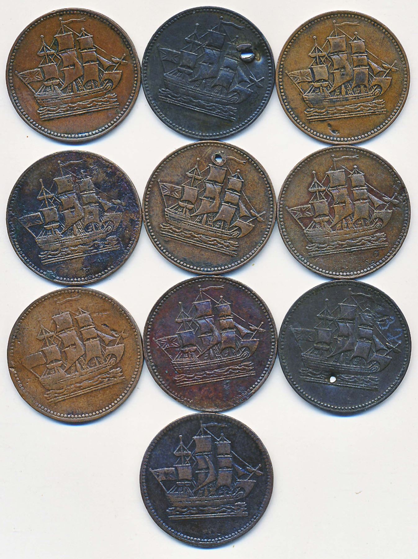 TOKENS PE-10 BR-997 PEI 10 Piece Ships and Colonies Very Good-Very Fine