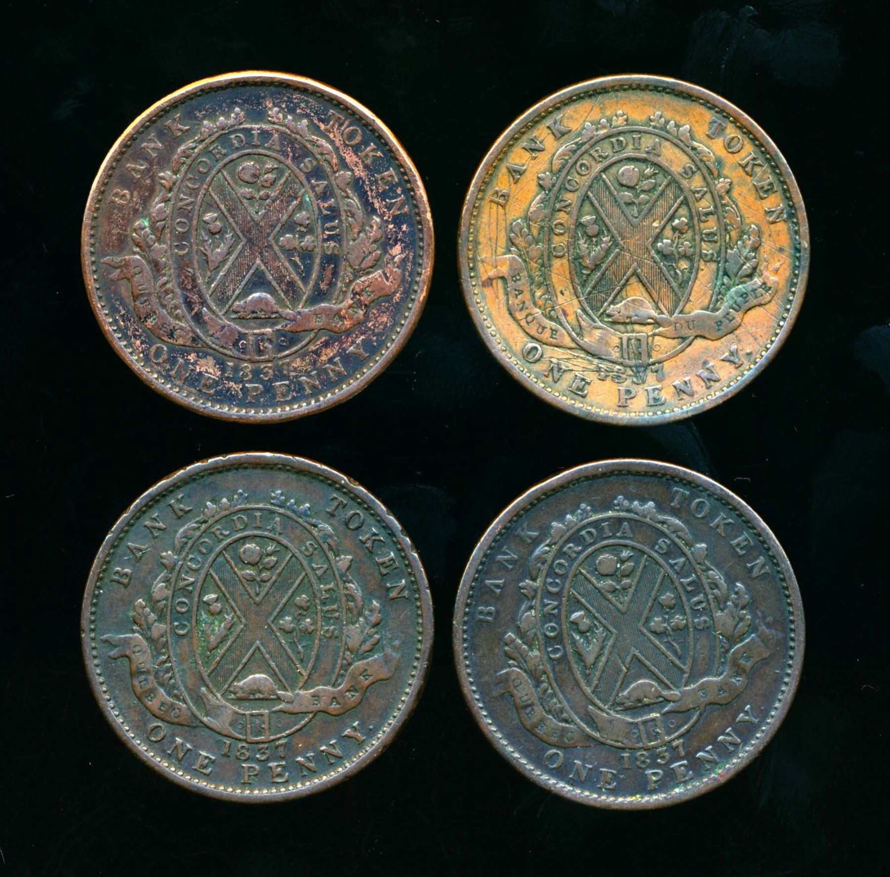 TOKENS Penny LC-9 Br-521 A Lot of 4 Pieces, All in Fine