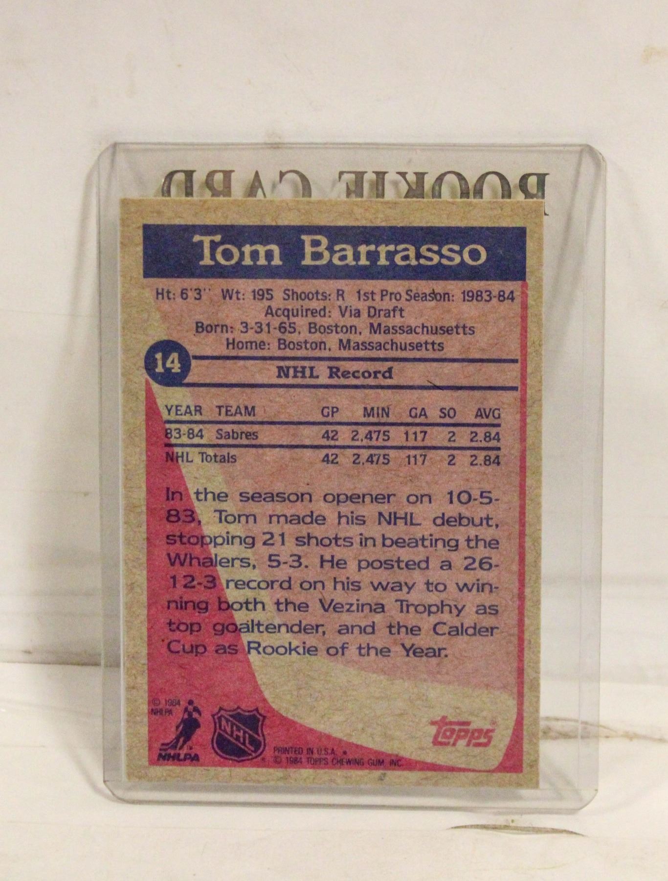 TOM BARRASSO GOALIE SABRES 14