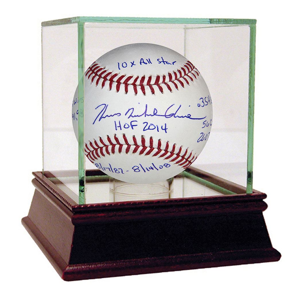 TOM GLAVINE AUTOGRAPHED OFFICIAL MLB BALL MULTI-STAT IN **|**|** Baseball Hall of Famer Tom Glavine has personally hand-signed this multi-inscribed official MLB baseball. Inscriptions listed on this baseball are: "Thomas Michael Glavine, 8/17/87-8/14/08, 305 wins, 3.54 ERA, 56 CG, 2,607 Ks, 91/98 Cy Young, 10X All-Star, HOF 14."