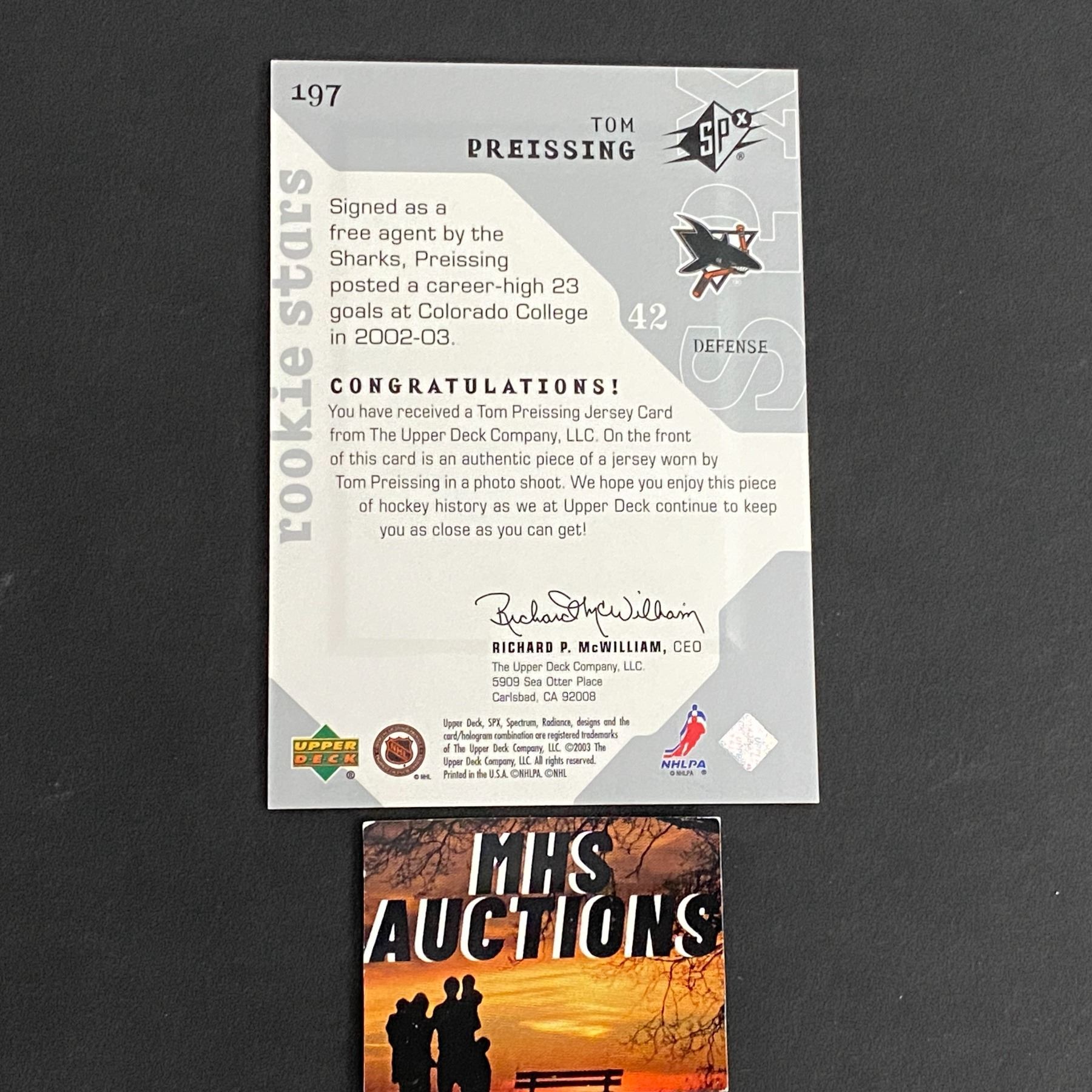 TOM PREISSING 2003-04 SPX ROOKIE JERSEY HOCKEY CARD