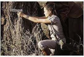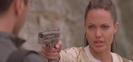 TOMB RAIDER THE CRADLE OF LIFE MATCHED PAIR OF GOLD GUNS IN NICE DISPLAY SUPER HERO!