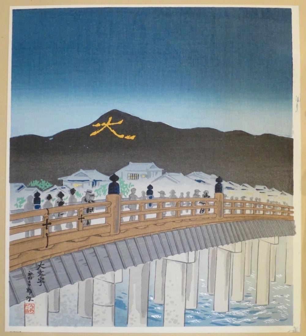 TOMIKICHIRO TOKURIKI April: Arashiyama Park, a famous scenic resort.This title is from the COMPLETE PORTFOLIO TWELVE MONTHS OF KYOTOâ€, CIRCA 1950, By Tomikichiro Tokuriki. The print is matted with thin paper. It is titled in Japanese and comes with the Artist sealed in the block. FINE CONDITION