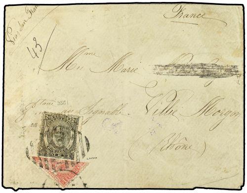 1893 (June) Cover endorsed ´Via San Francisco´ to France, addressee´s name erased, franked by 1892-93 diagonally bisected 1d. rose and 2d. black tied by obliterator in black Reverse with German Apia cds´s (June 29 and July 19). Ville-Morgon arrival (Aug 21) alongside. Rare. Sg 10b,11.