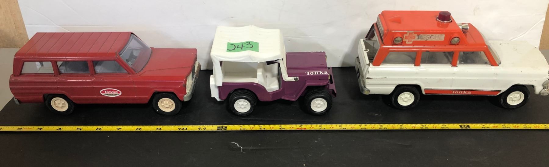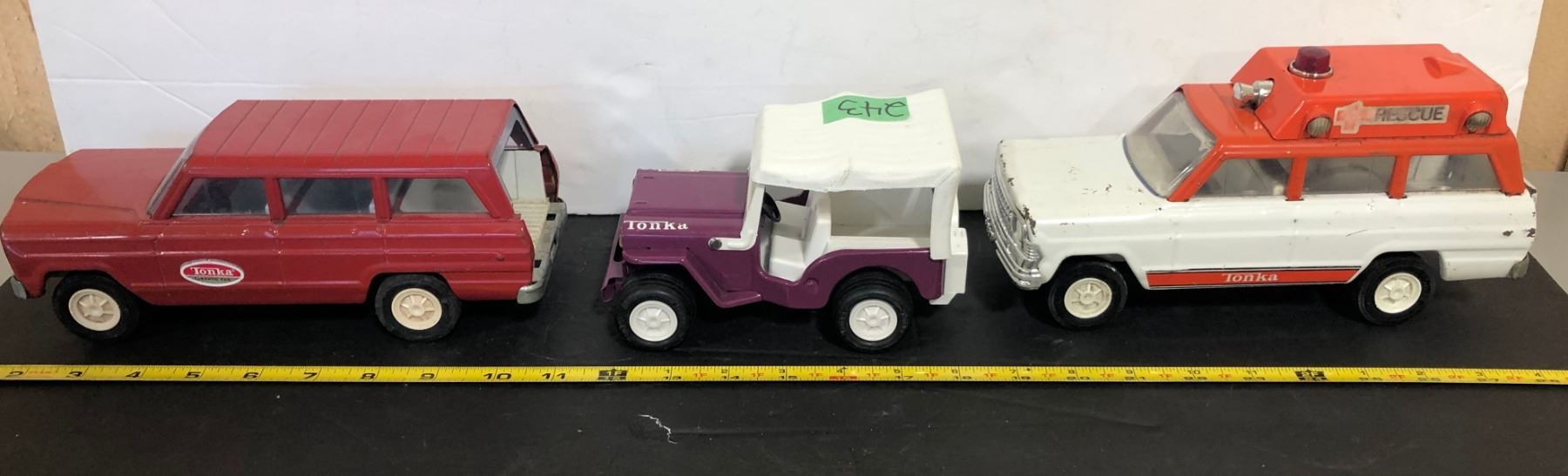 TONKA AMBULANCE, STATION WAGON, JEEP - TIN & PLASTIC VINTAGE TOYS