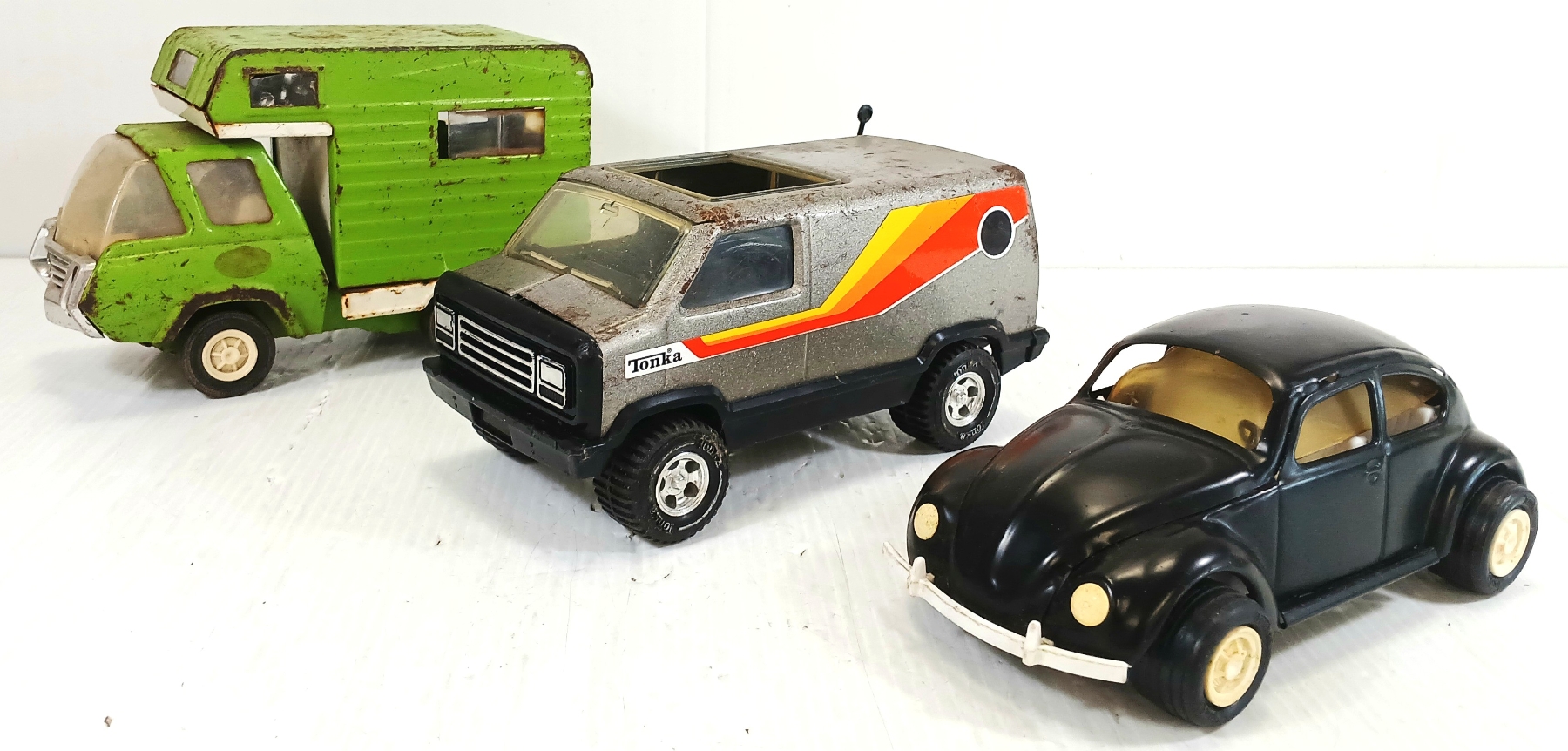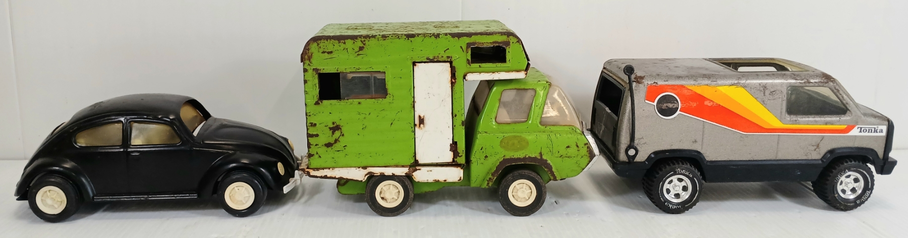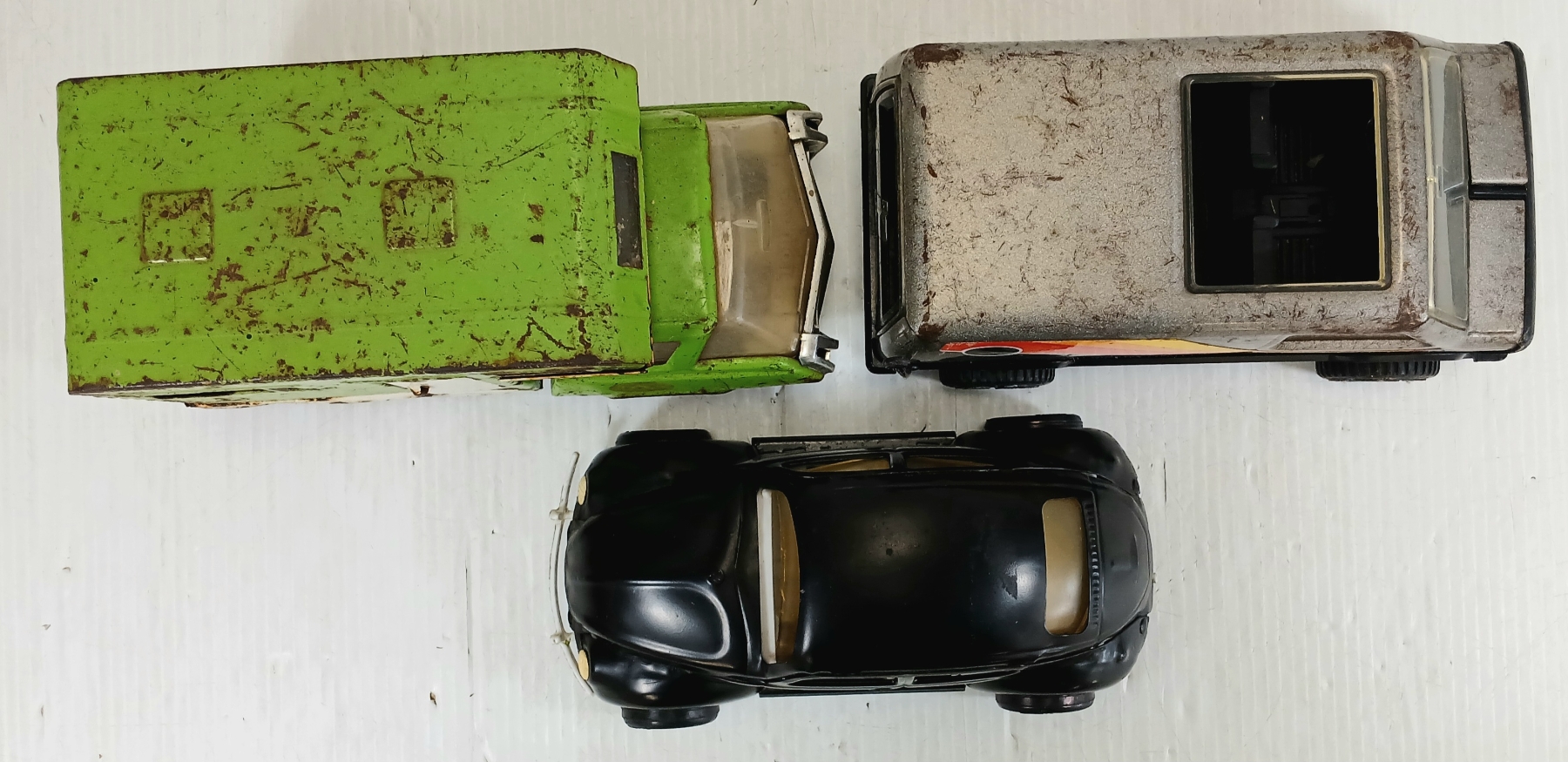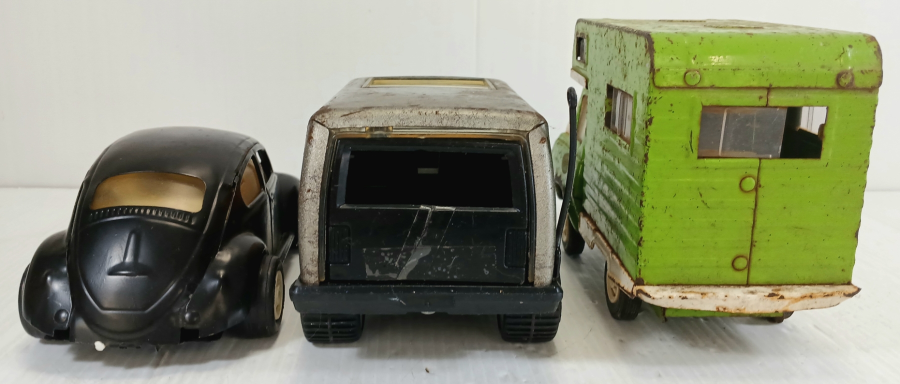 NOTE: LARGEST IS 4 X 5.5 X 9IN - VAN PRESSED STEEL & METAL - MISSING PCS - MOVEABLE PCS - SEE ALL PHOTOS
