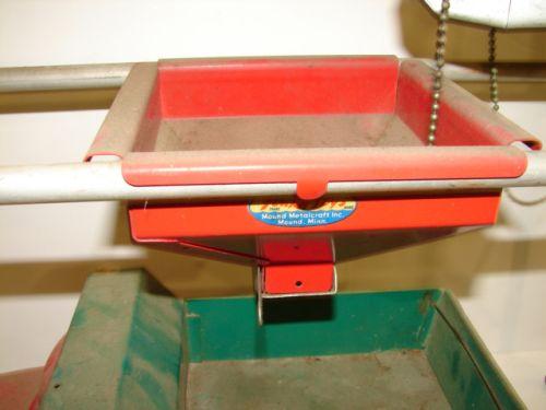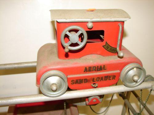 TONKA TOYS DUMP TRUCK & LOADER. Consists of aerial sand loader with frame & dump truck. Truck is labeled on both doors “Tonka Toys/Mound Metalcraft Inc./Mound, Minn.” In need of cleaning. 19.25” H. Truck: 12.5” L