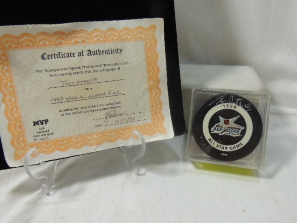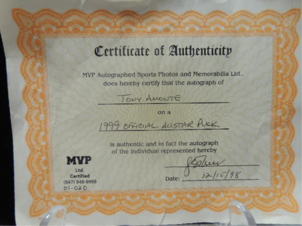OFFICAL ALL STAR PUCK TONY AMONTE AUTOGRAPH WITH COA FROM MVP. AS SHOWN. SEE PHOTOS FOR MORE DETAILS.