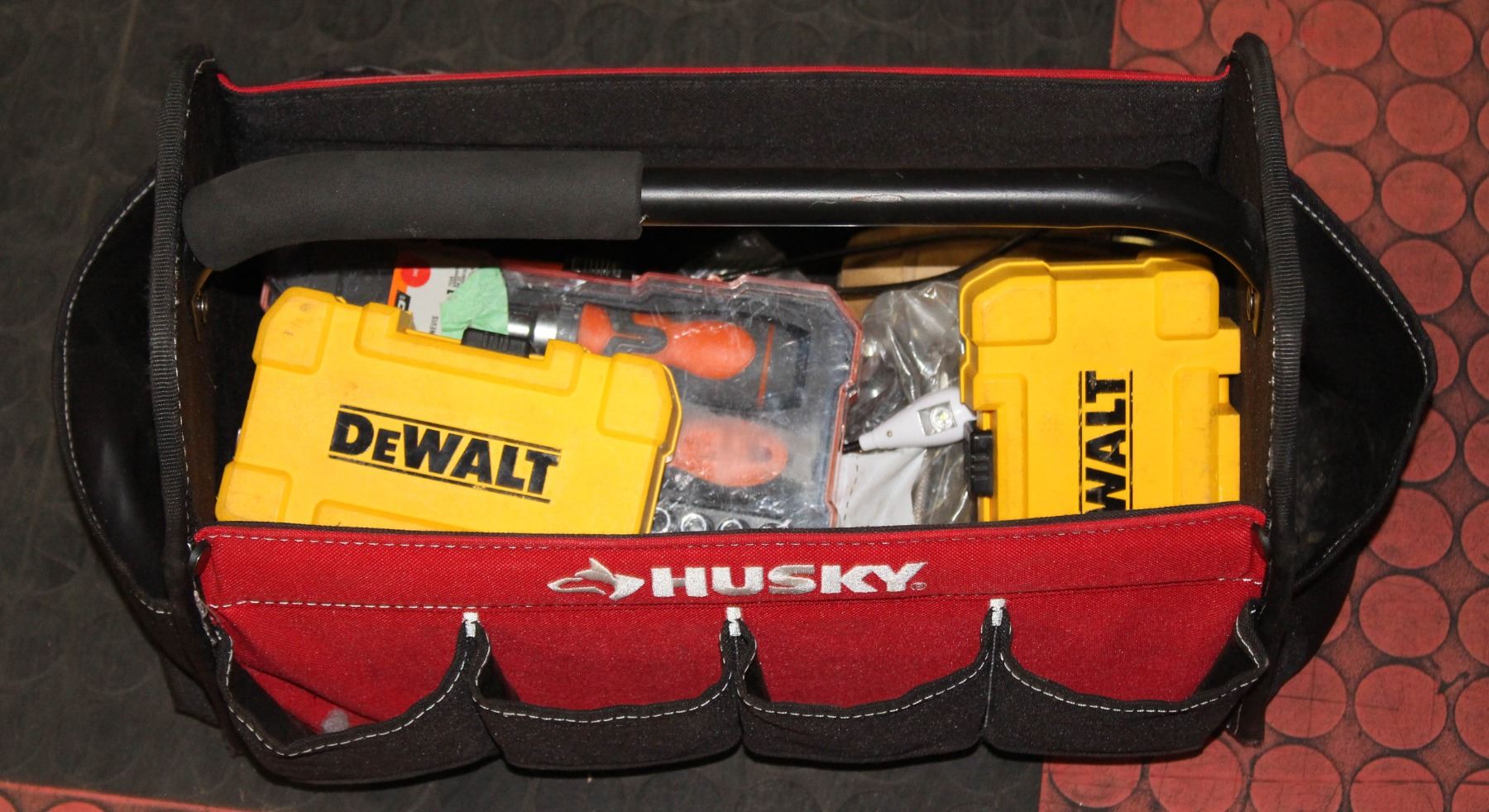 TOOL BAG WITH DEWALT TOOLS AND MORE