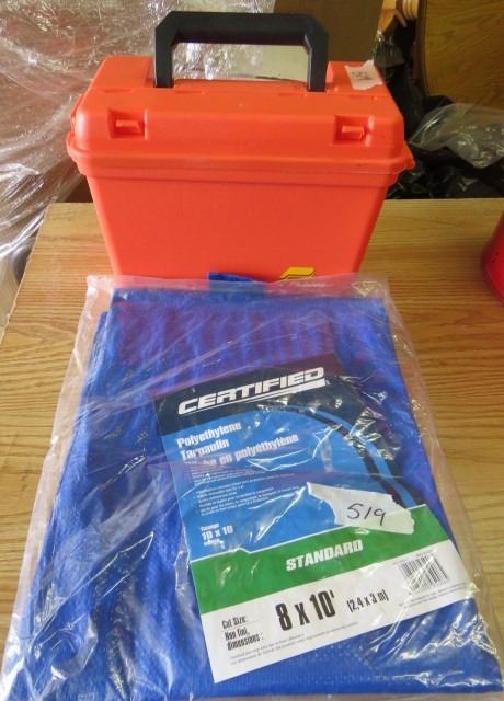 TOOL BOX AND TARP (13"L X 8"T X 6"W) *TARP 8' X 10')