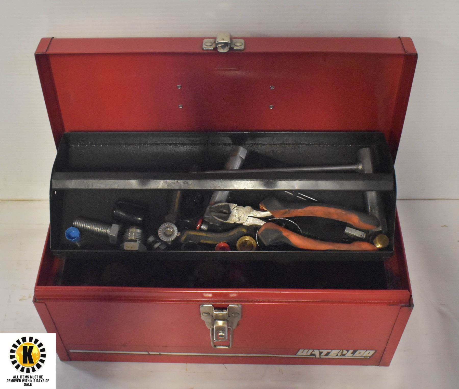TOOL BOX FILLED WITH TOOLS AND PLUGS