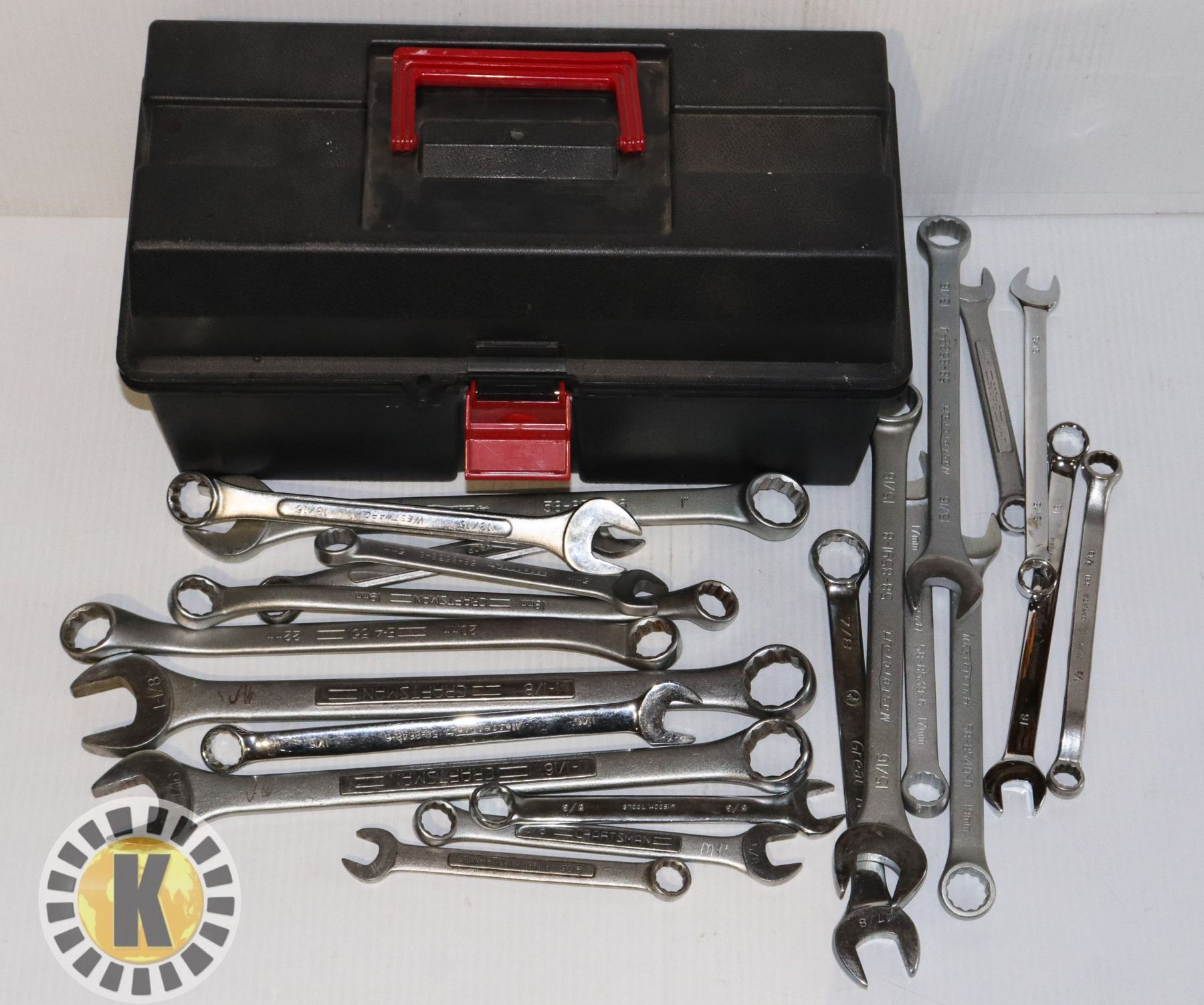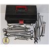 TOOL BOX FULL OF ASSORTED SIZED/ BRAND WRENCHES