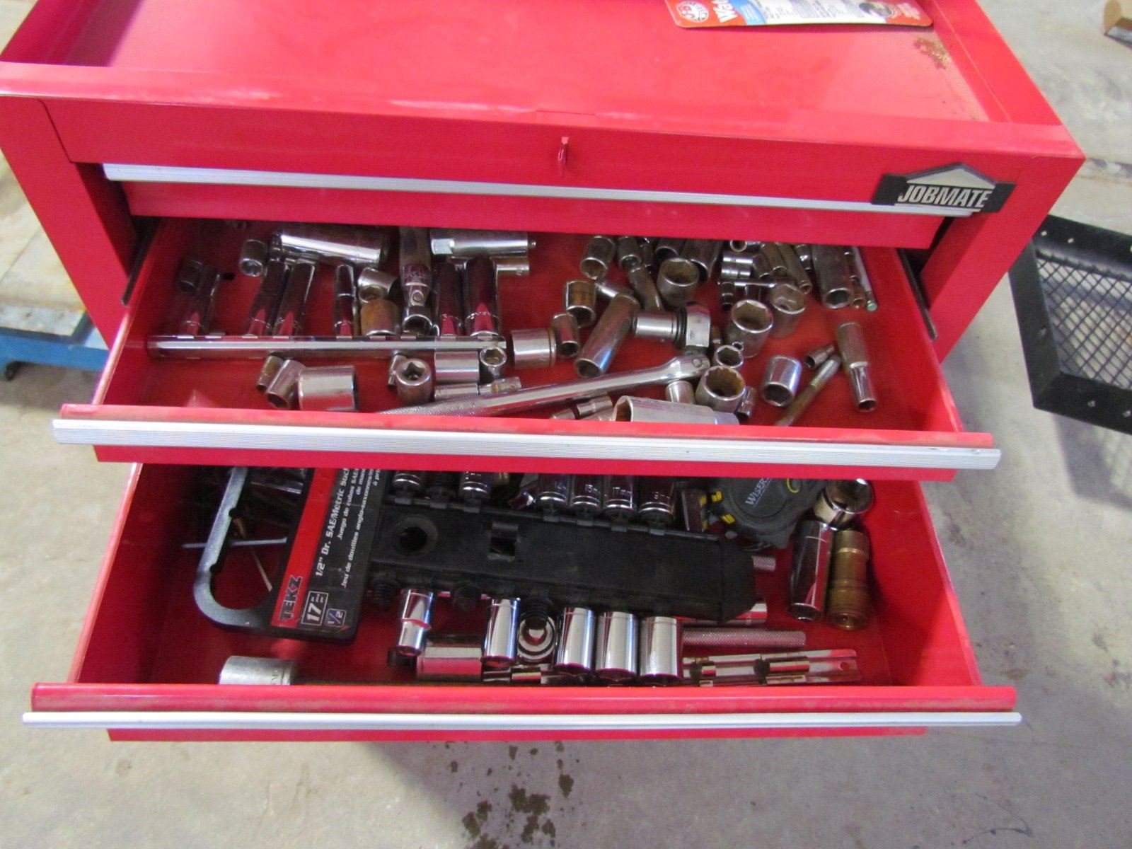 TOOL BOX, JOB MATE W/ASSORTED TOOLS, SOCKETS, ETC