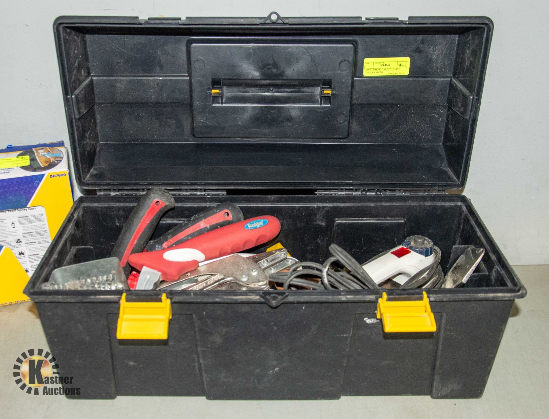 TOOL BOX OF CARPET LAYING TOOLS & IRONS