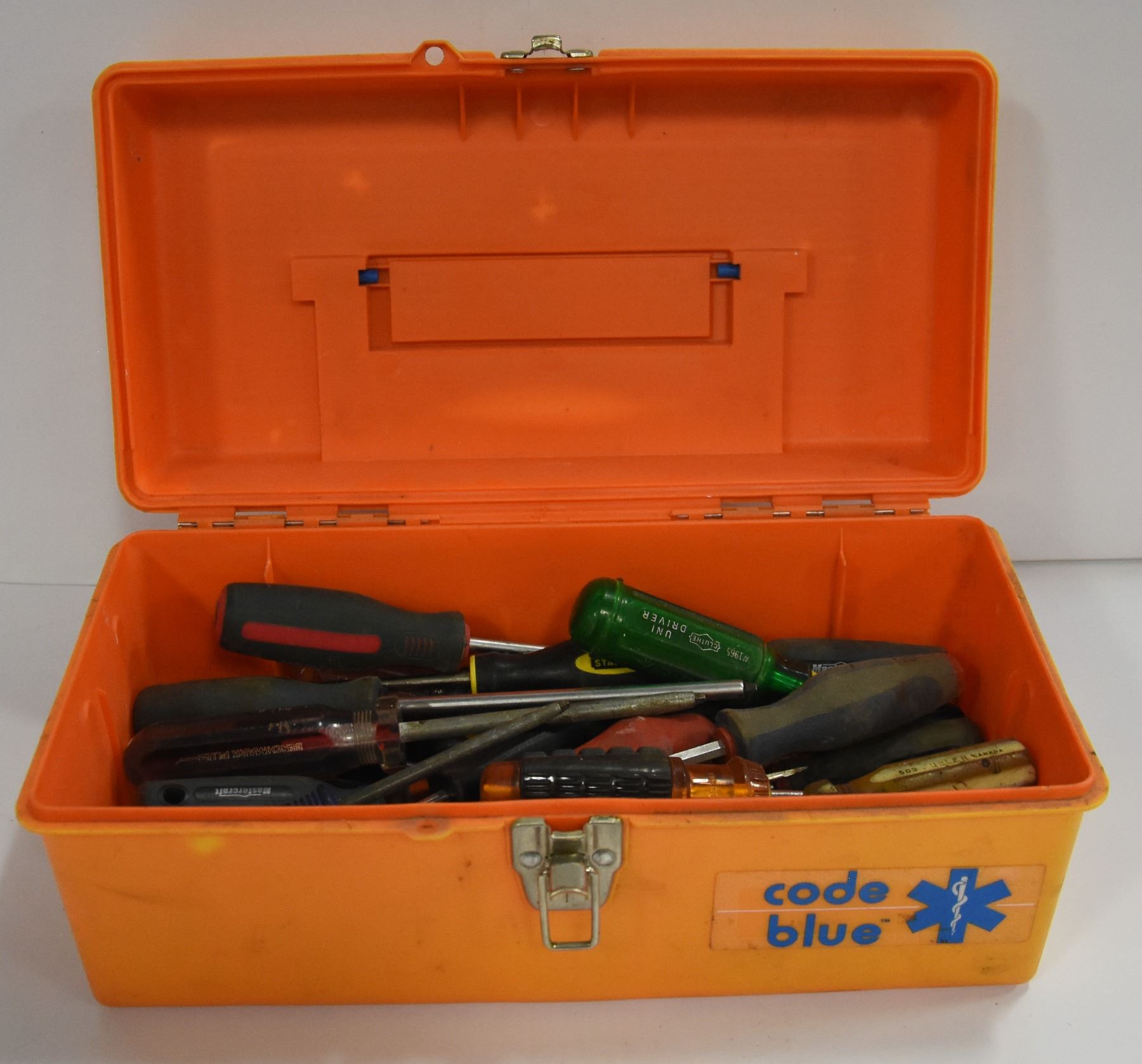 TOOL BOX W/ ASSORTED SCREWDRIVERS