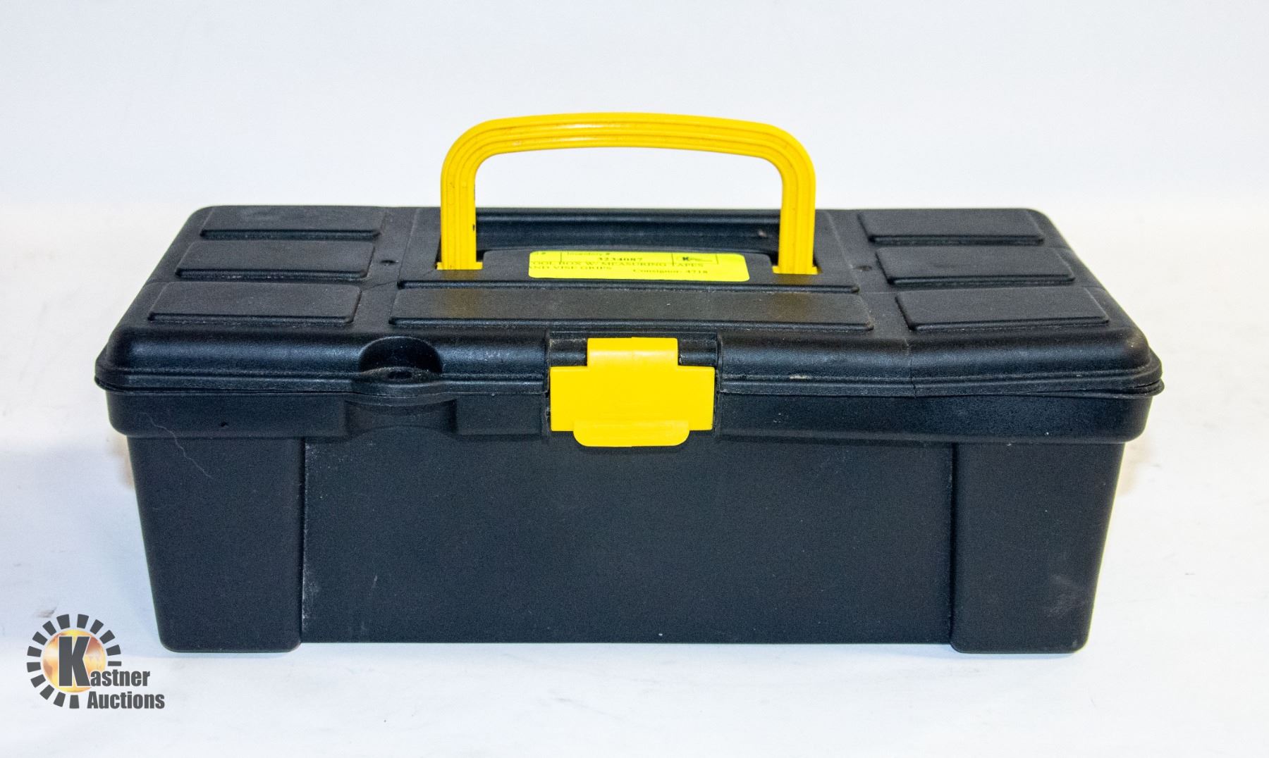 TOOL BOX W/ MEASURING TAPES AND VISE GRIPS