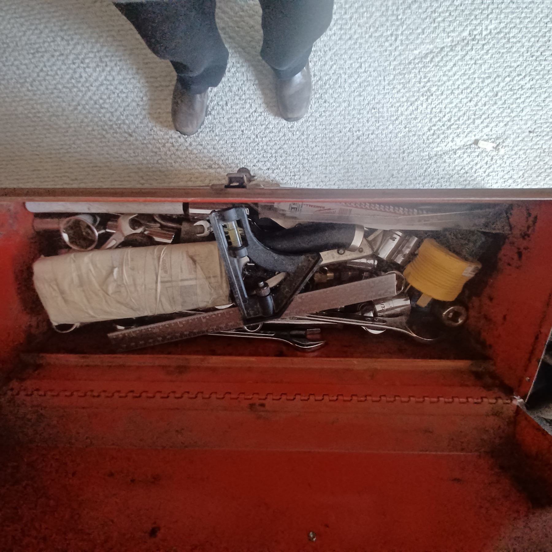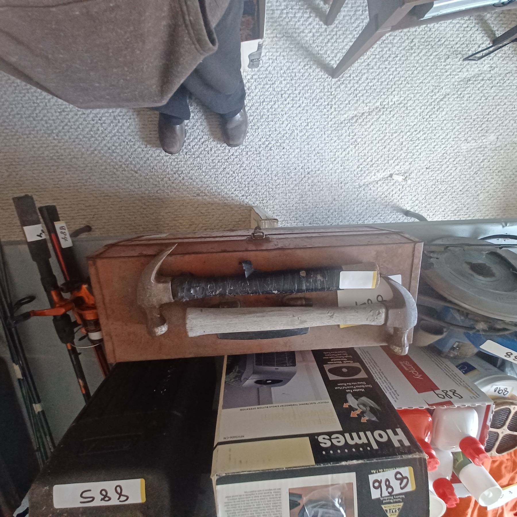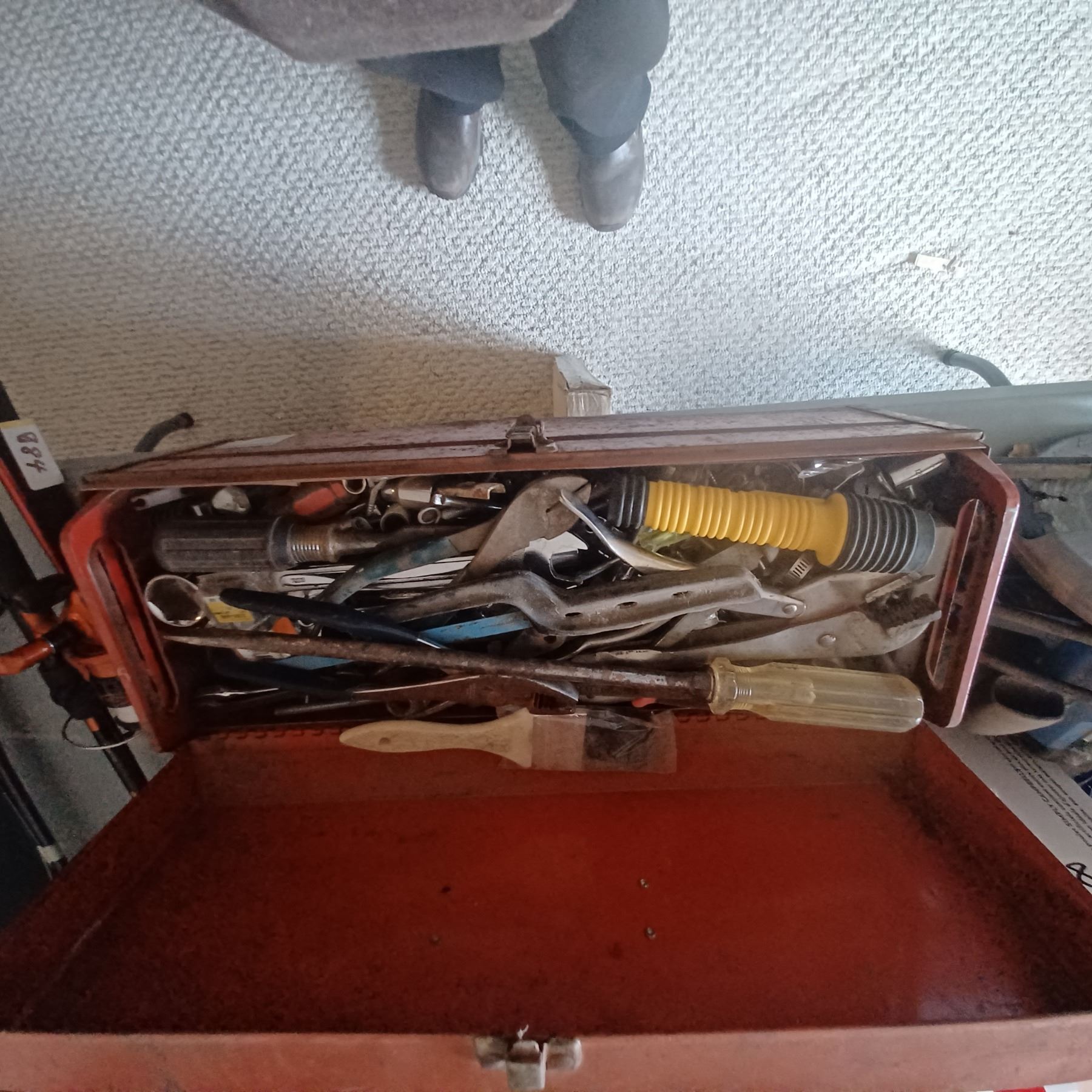 TOOL BOX WITH 2 HAMMERS AND LOTS OF TOOLS