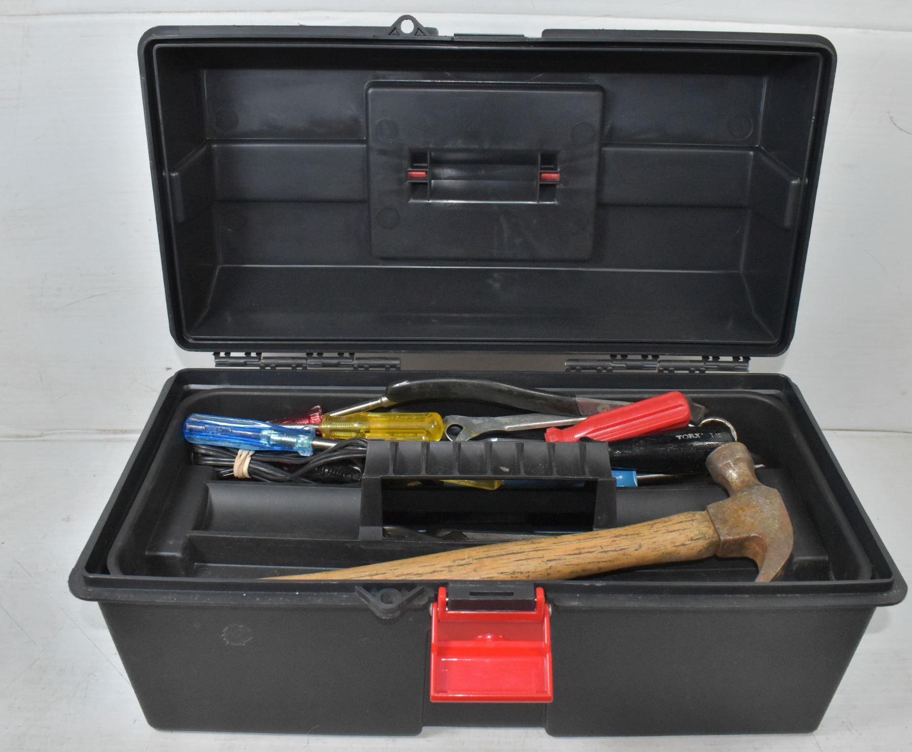 TOOL BOX WITH ASSORTED HAND TOOLS