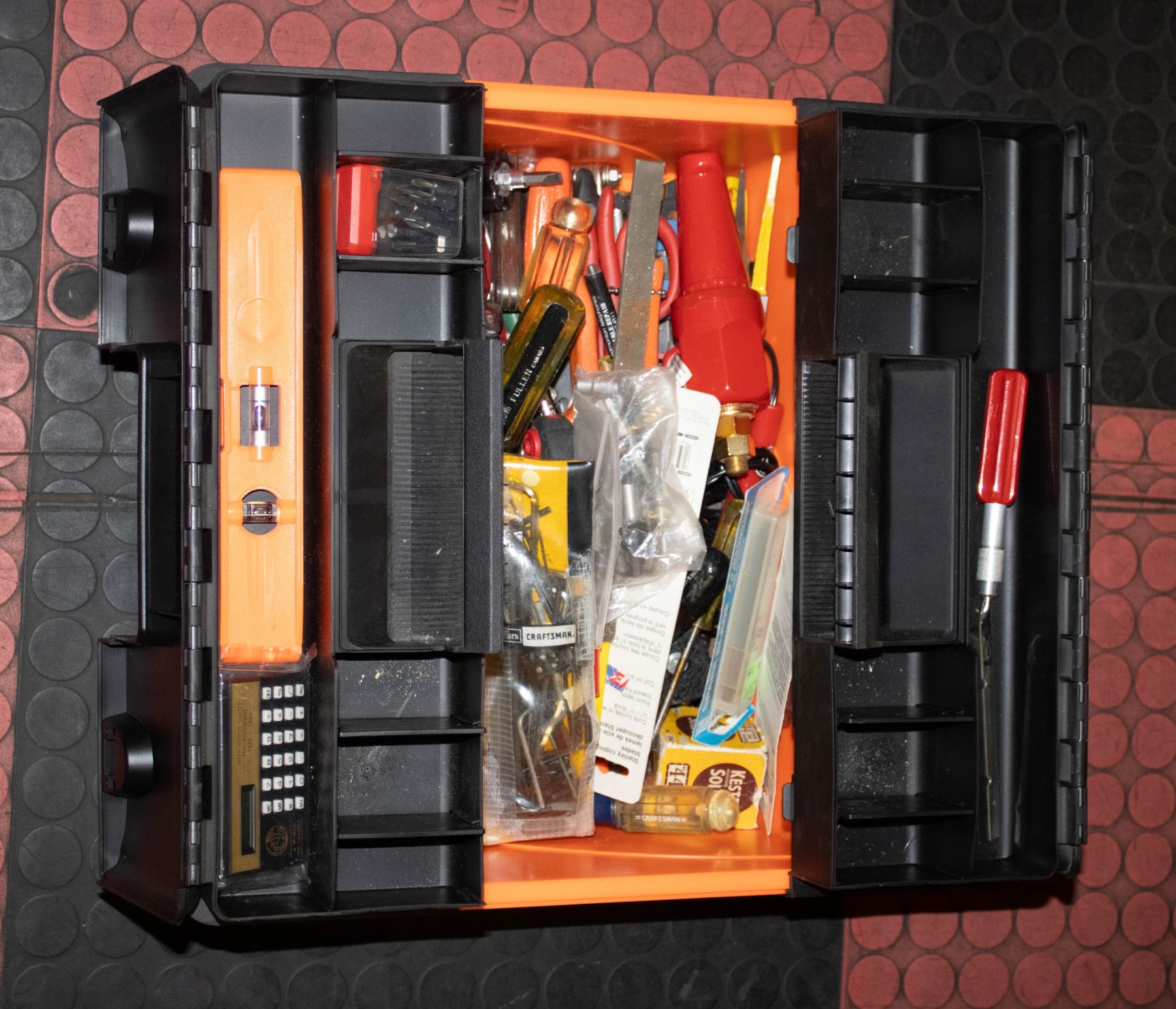 TOOL BOX WITH HAMMERS, EXACTO KNIVES, FILES, SCRE