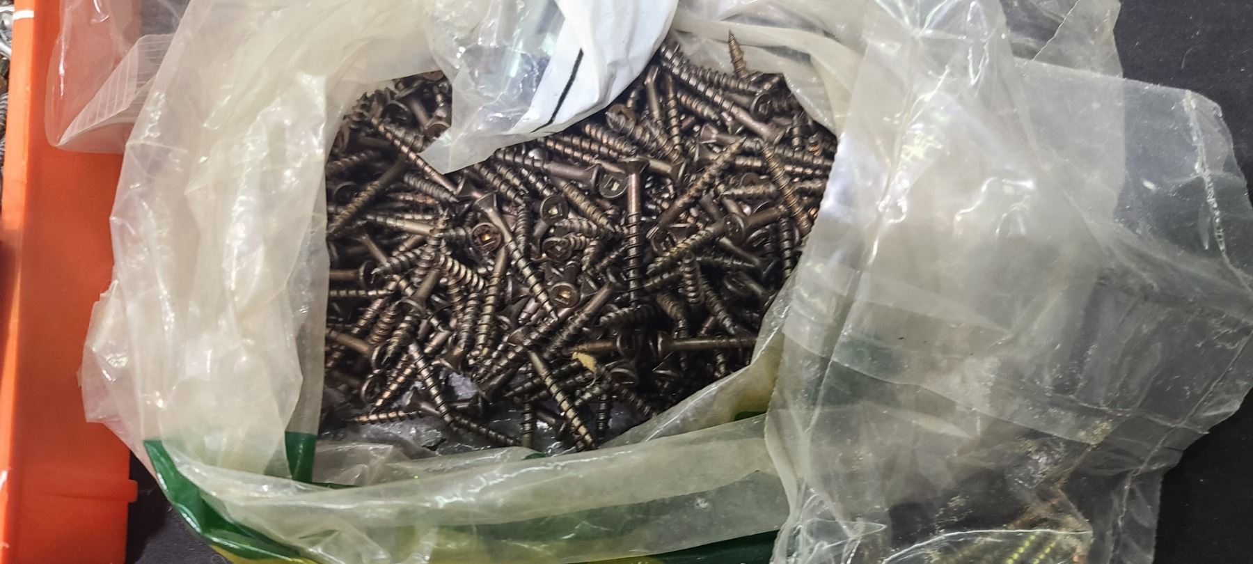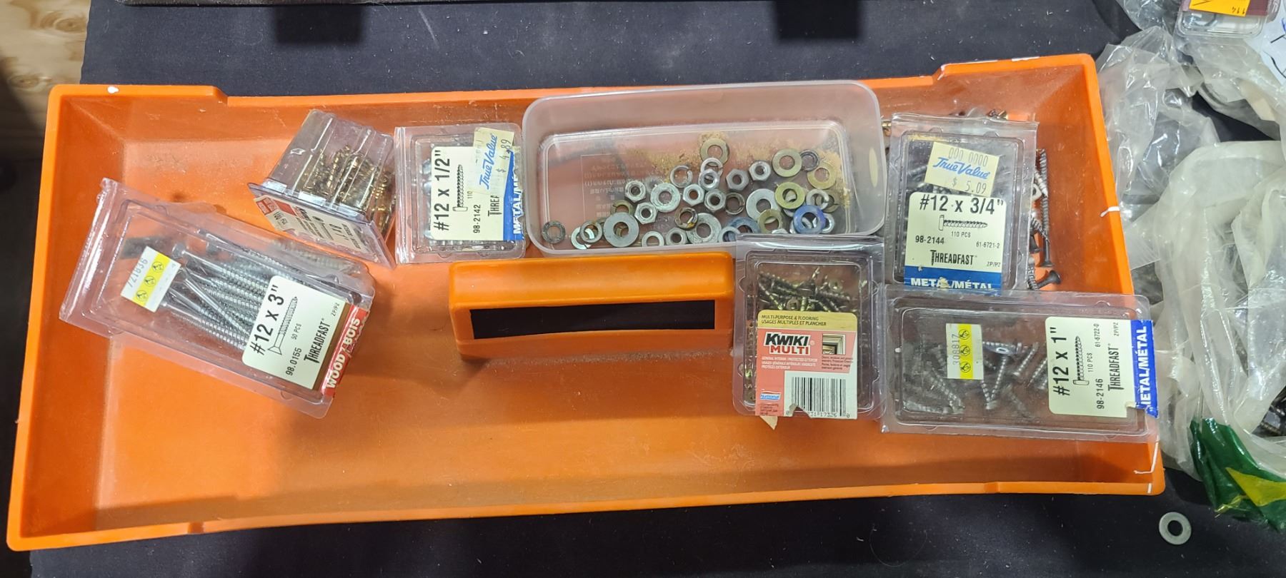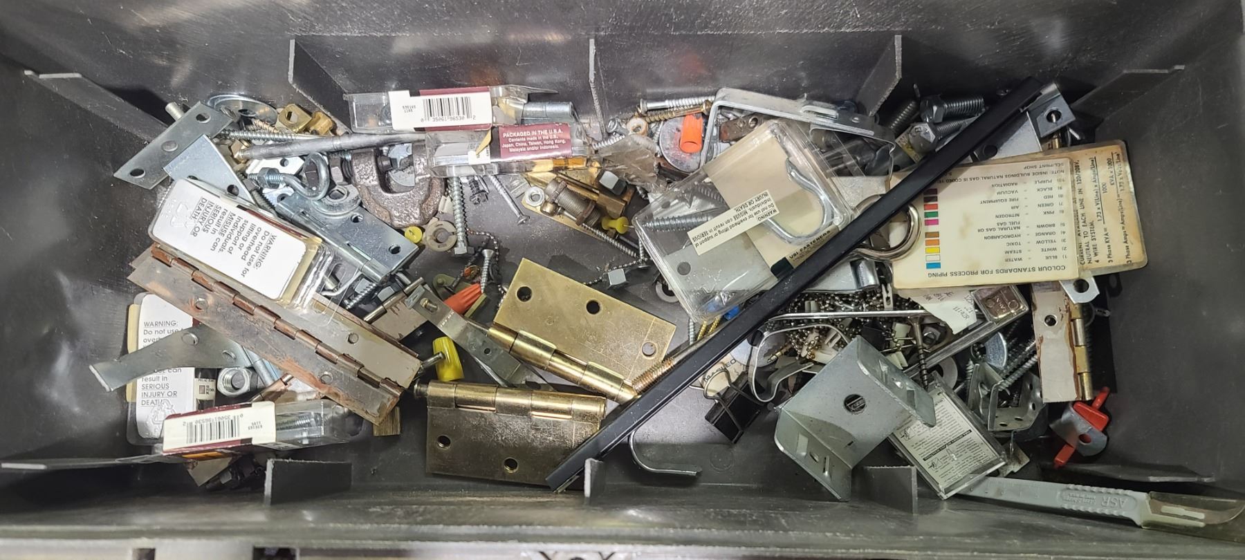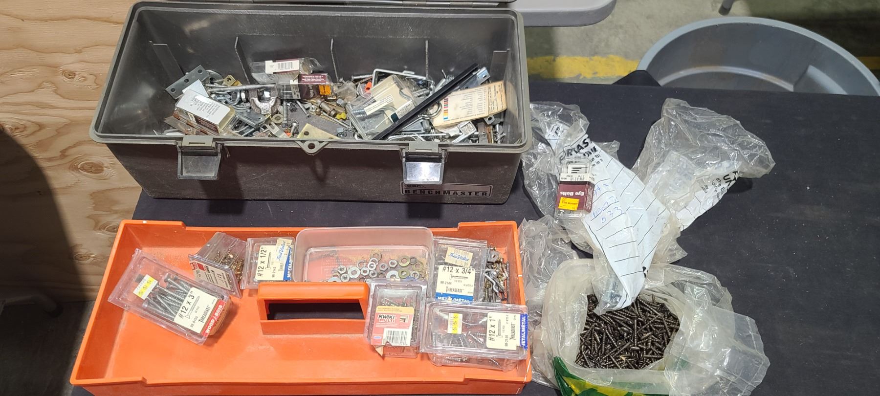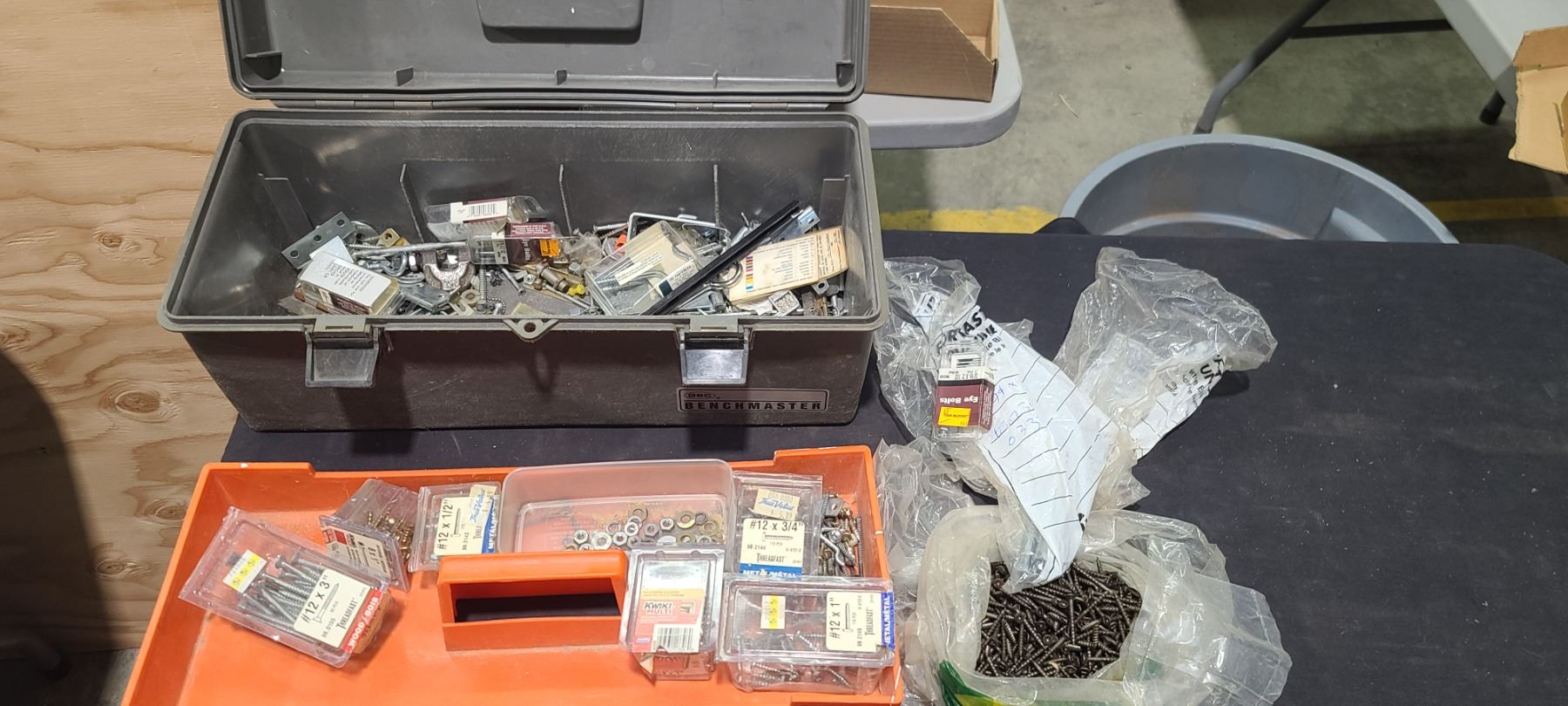 TOOL BOX WITH SCREWS, NAILS, AND HINGES