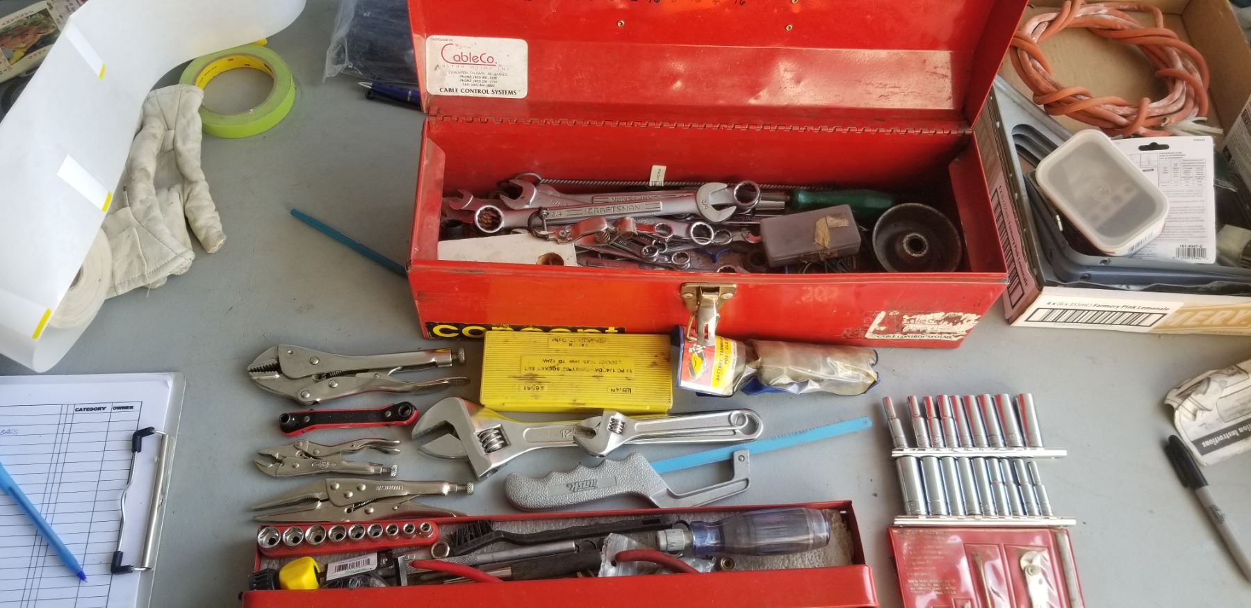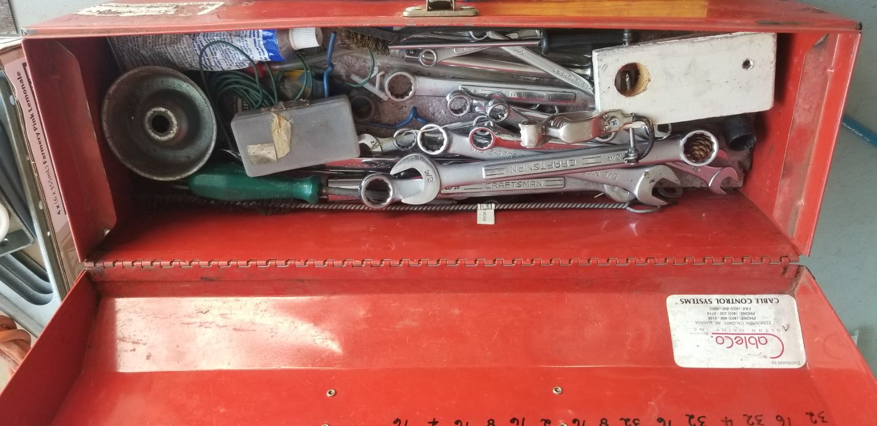 TOOL BOX WITH VARIOUS TOOLS PLEASE SEE IMAGE