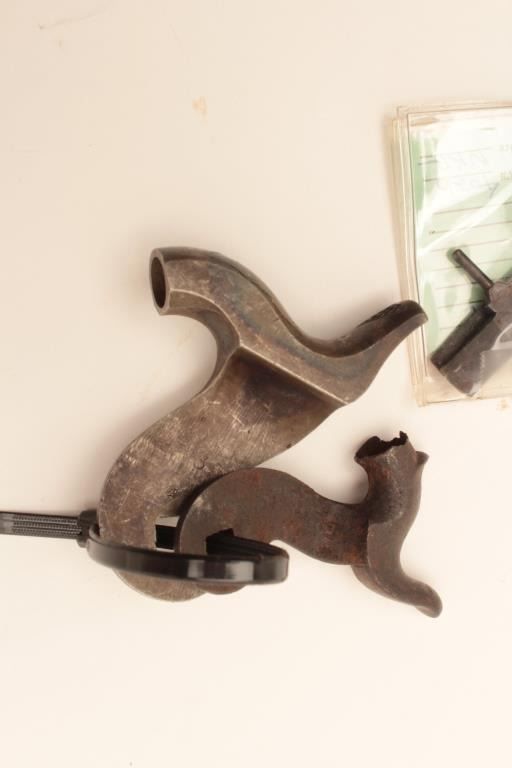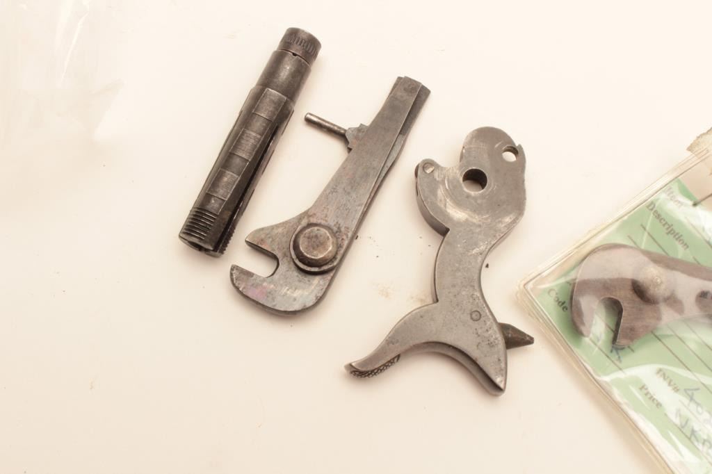Lot of tools and parts as described; 1. 2 1879 combo tools for Springfield and Colt single action. Both are very good to almost fine. 2. Shell extractor for Springfield trapdoor3. Colt black powder Single Action hammer 4. Case hardened musket hammer. Near fine 5. American percussion hammer. Good condition Est:$150-300