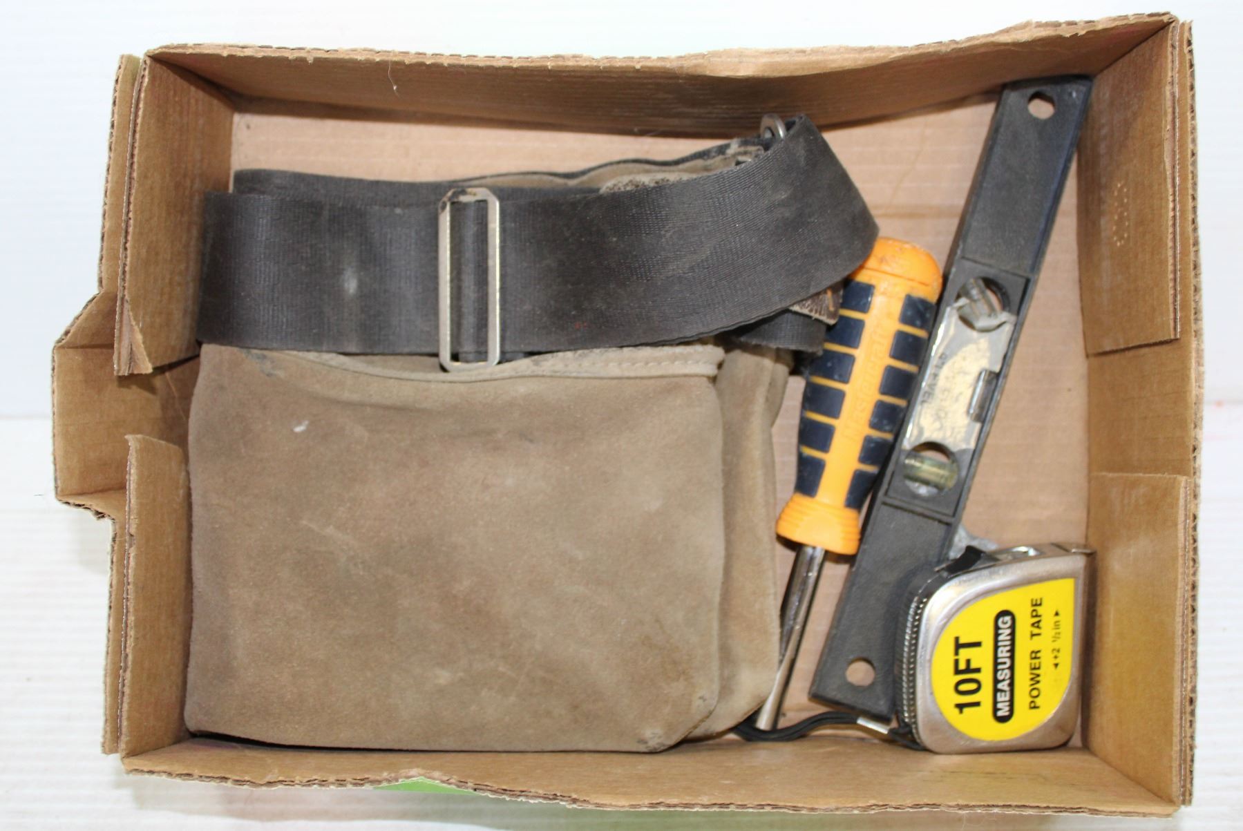SMALL LEATHER TOOL POUCH WITH ASSORTMENT OF TOOLS