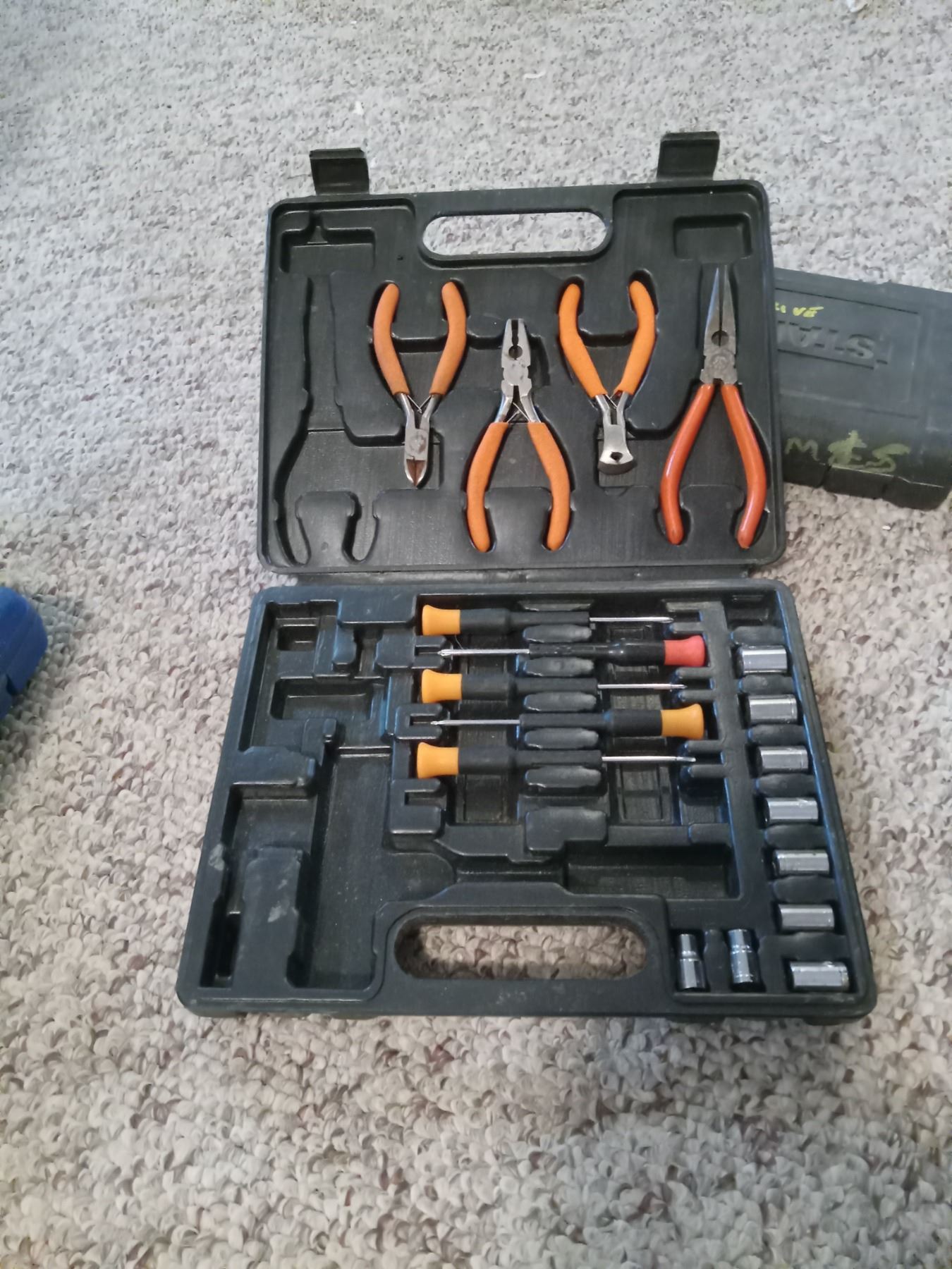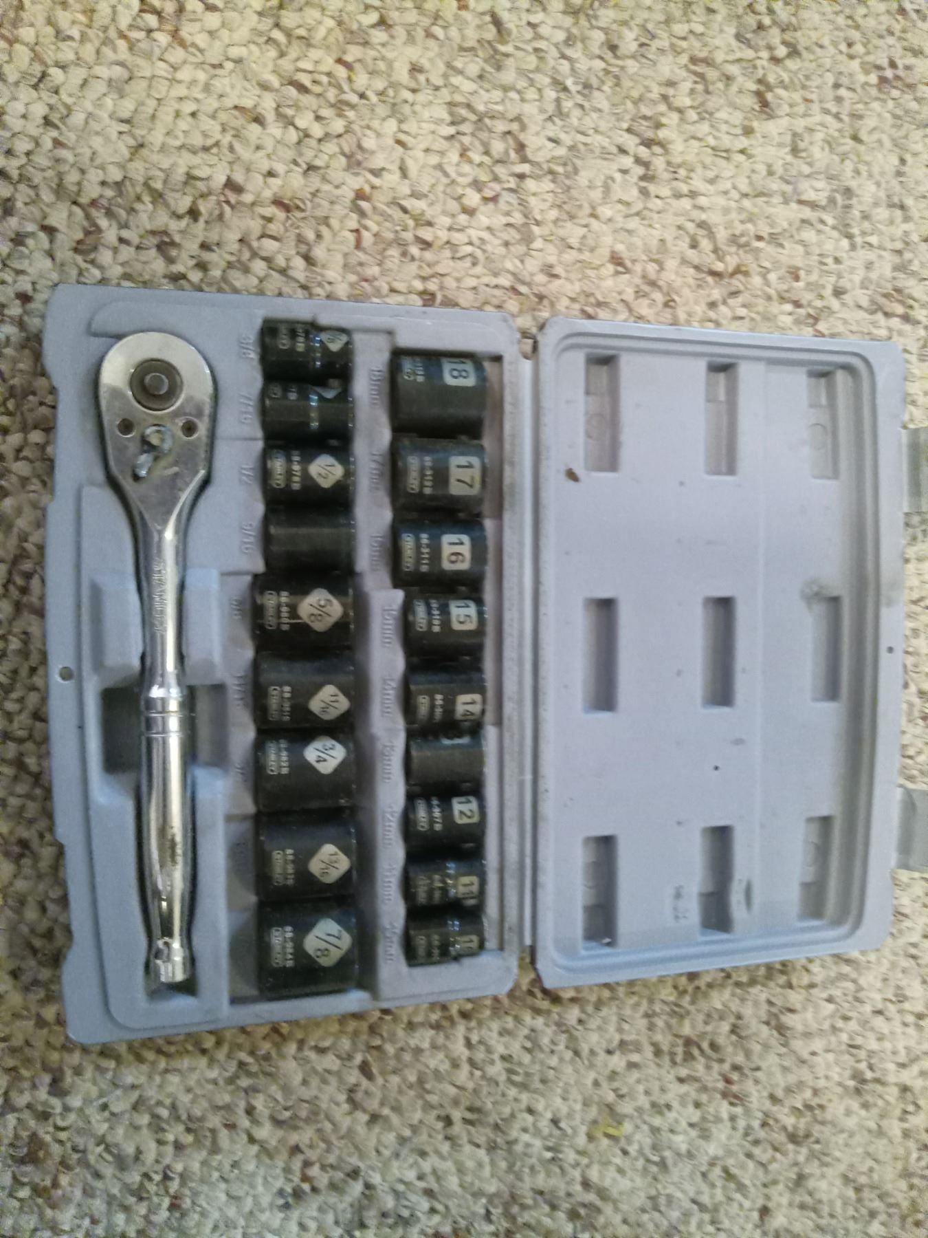 TOOL STORAGE(x4) w/ CONTENTS (SEE: PHOTOS) 1-COMPLETE 3/8" STANLEY SOCKET SET; 3-PARTIAL (WESTWARD-INCOMPLETE)