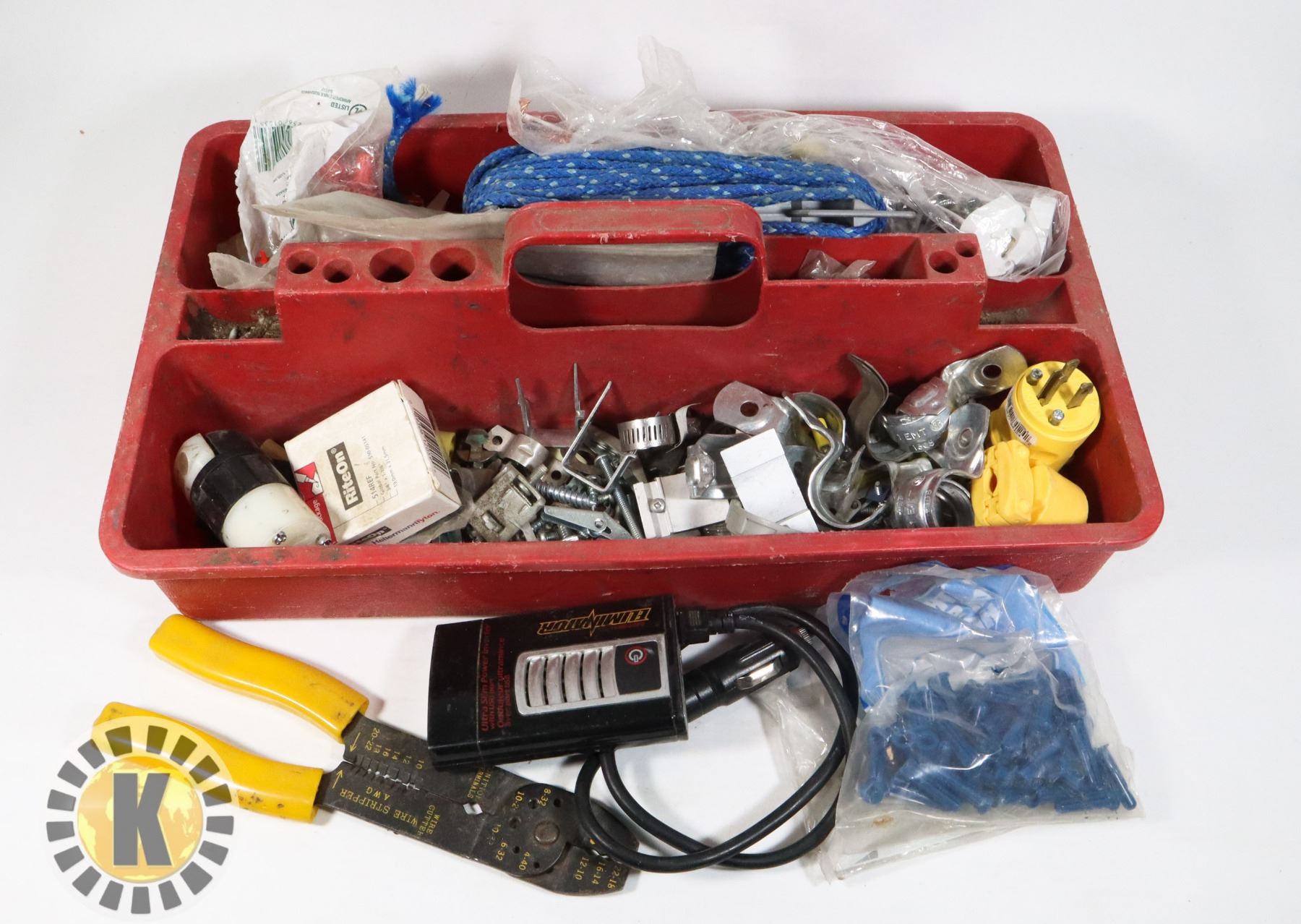 TOOL TRAY FULL OF ELECTRICAL SUPPLIES AND MORE