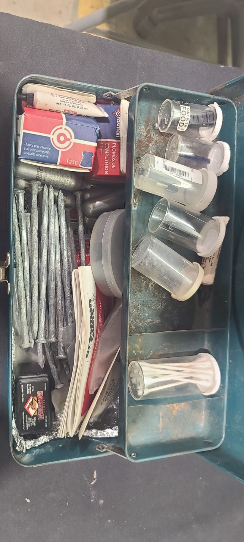 TOOLBOX WITH CROSSMAN AIR GUN SUPPIES - PELLETES-LUBE-OTHER