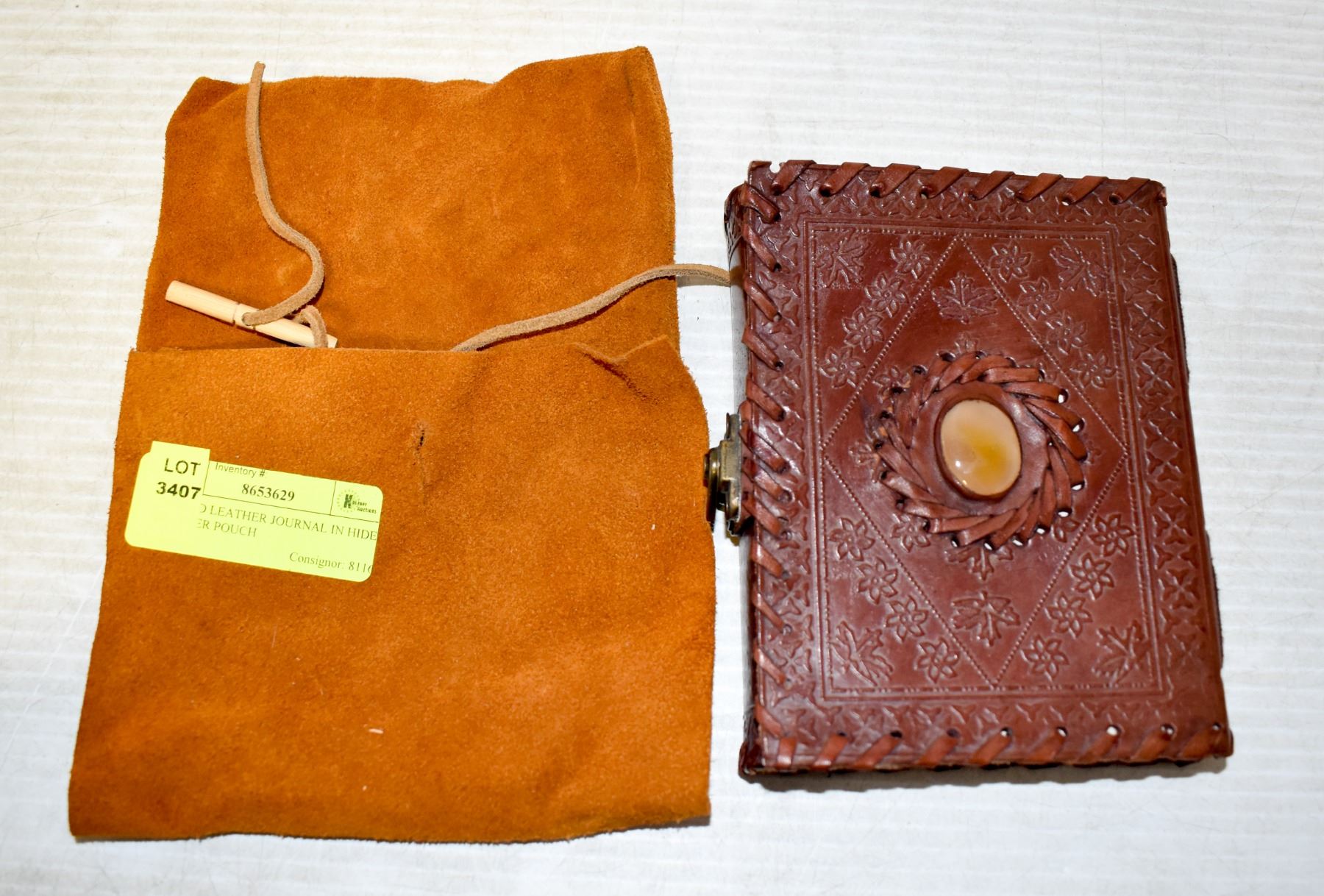 TOOLED LEATHER JOURNAL IN HIDE LEATHER POUCH