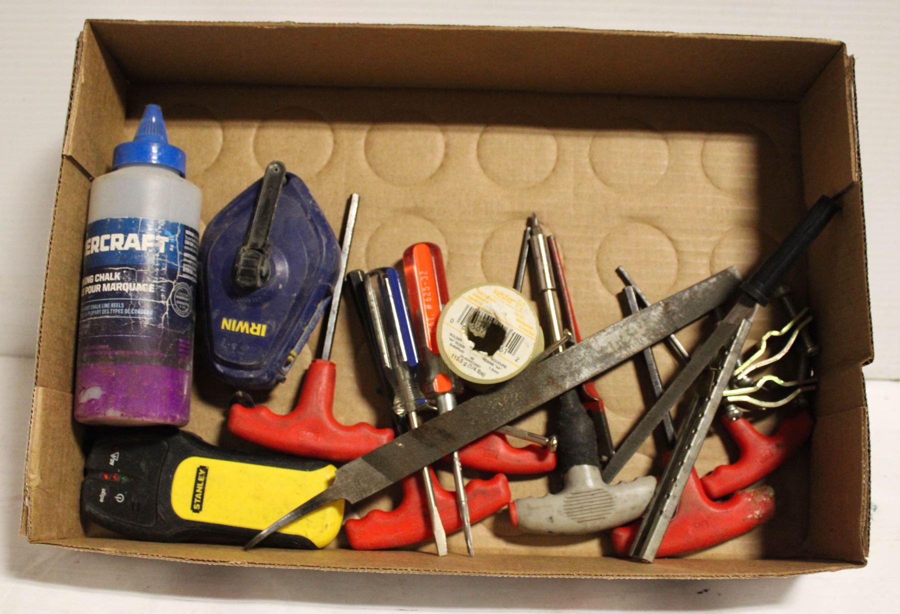 TOOLS FLAT CHALK LINE FILE SOLDER STUD FINDER ETC