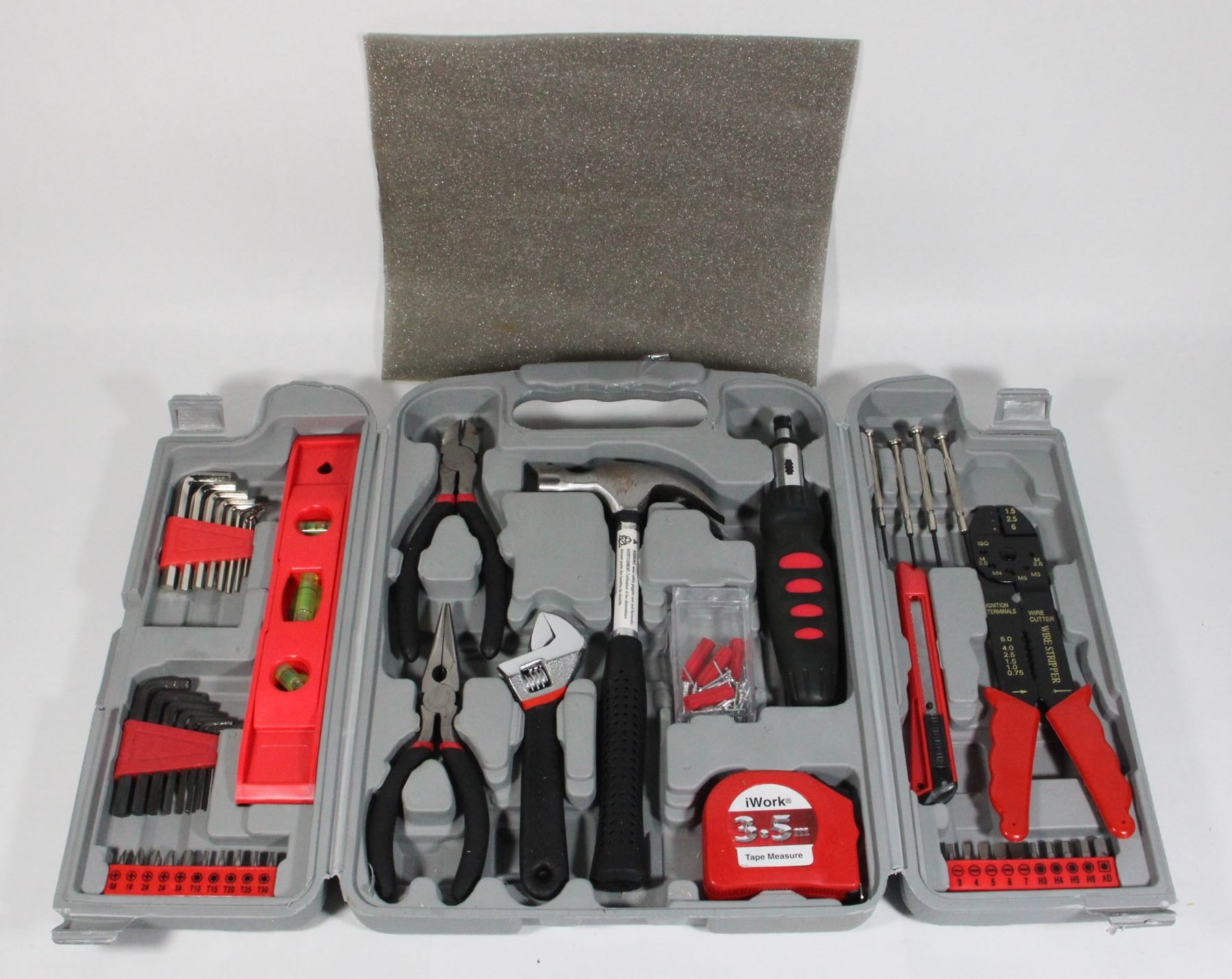 TOOLS SET IN CASE, HAMMER, PLIERS, ECT