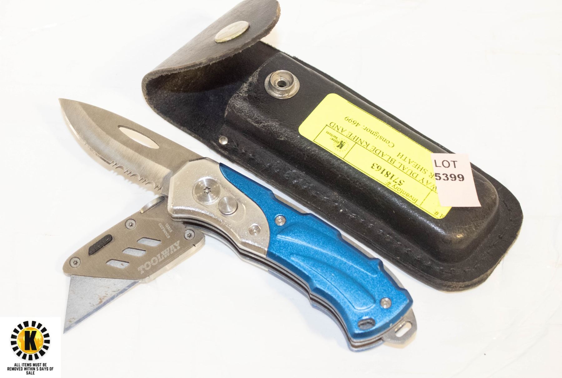 TOOLWAY DUAL BLADE KNIFE AND LEATHER SHEATH