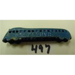Tootsie Toy Zephyr Rail Car. Vintage 1930's. Blue. Marked underneath. 2.25". Condition: Good
